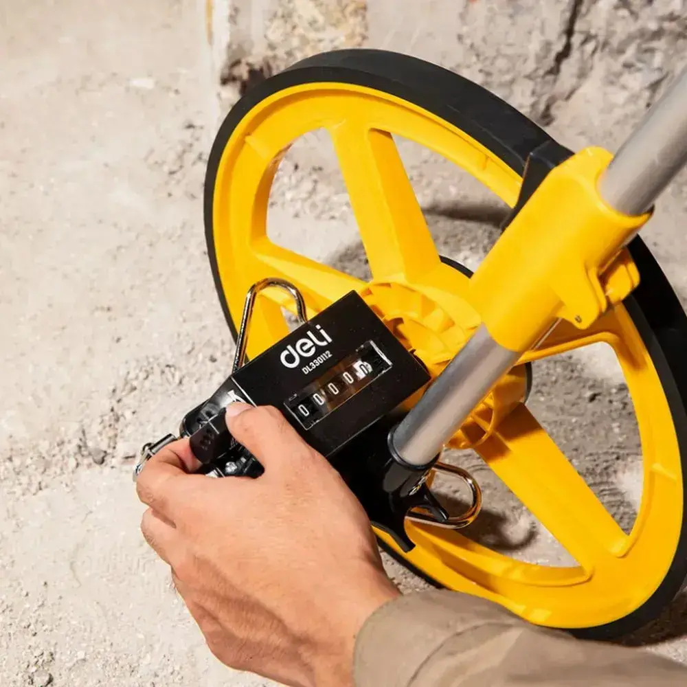 Измерительное дорожное колесо с механическим счетчиком Deli DL330112 диаметр 300мм, точность 0,5%, значение деления 0,1 мм, складная конструкция