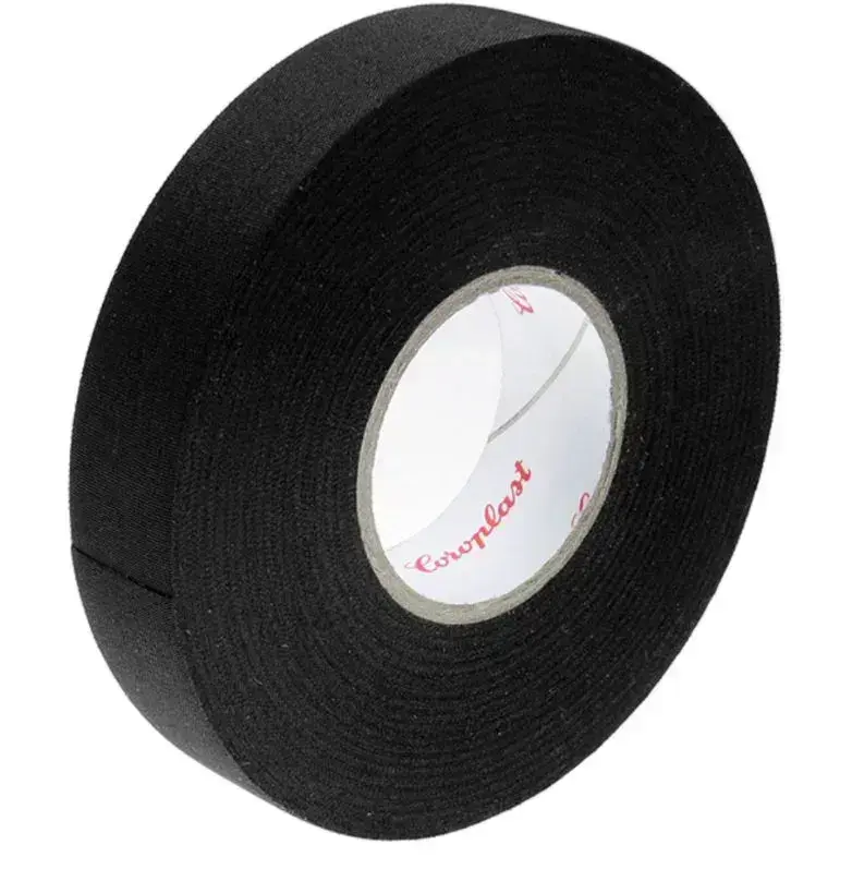 Изолента Коропласт 839 ПЭТ, 1 шт.25*19мм. автомобильная профессиональная подкапотная черная для жгутования, скрутки проводов, ПЭТ-ткань лавсан, матерчатая обмотка