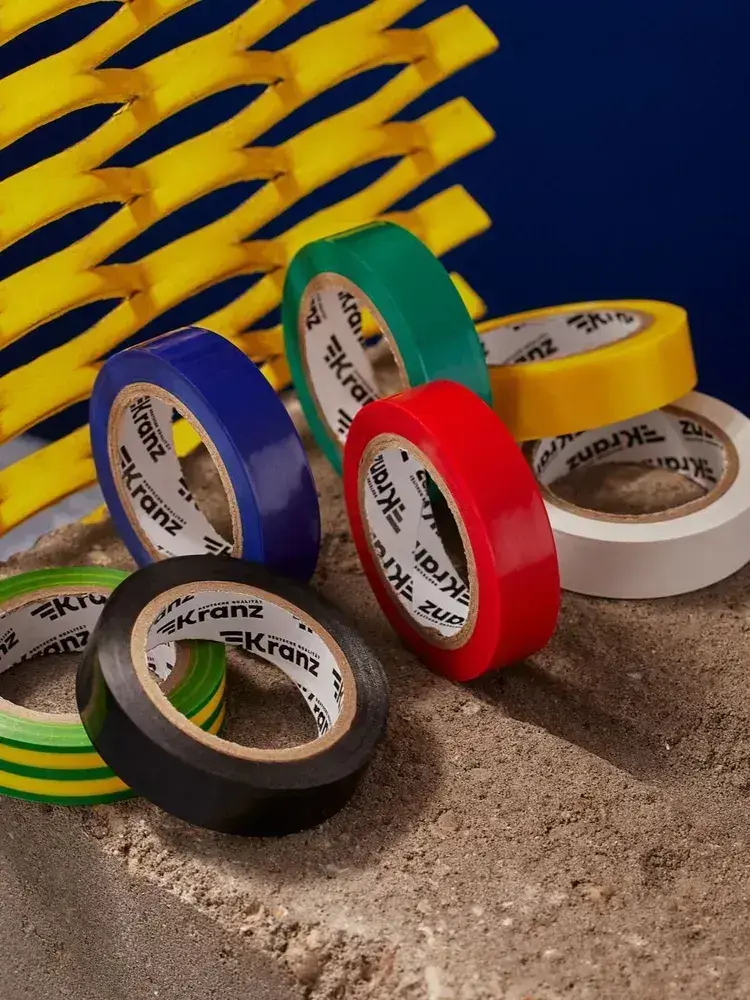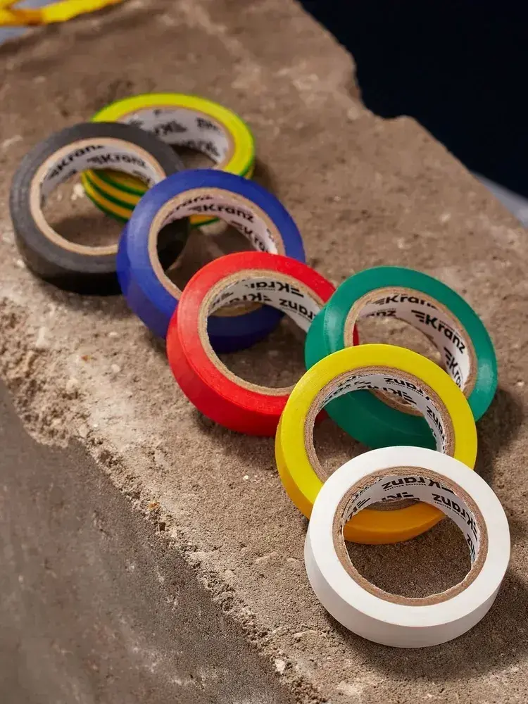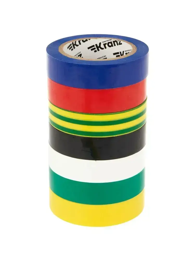 Изолента цветная 7 шт., набор электроизоляционных клейких лент для проводов KRANZ