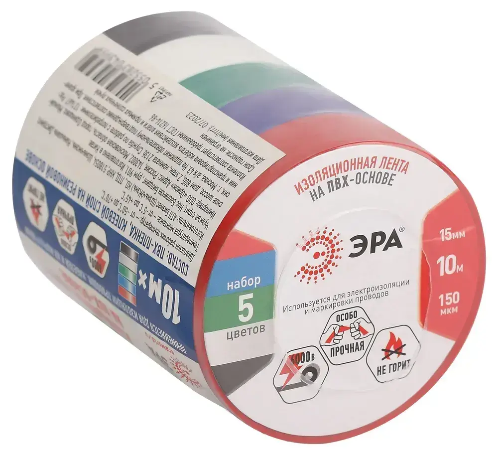 Изолента цветная набор 5 шт. ПВХ 15мм х 10м