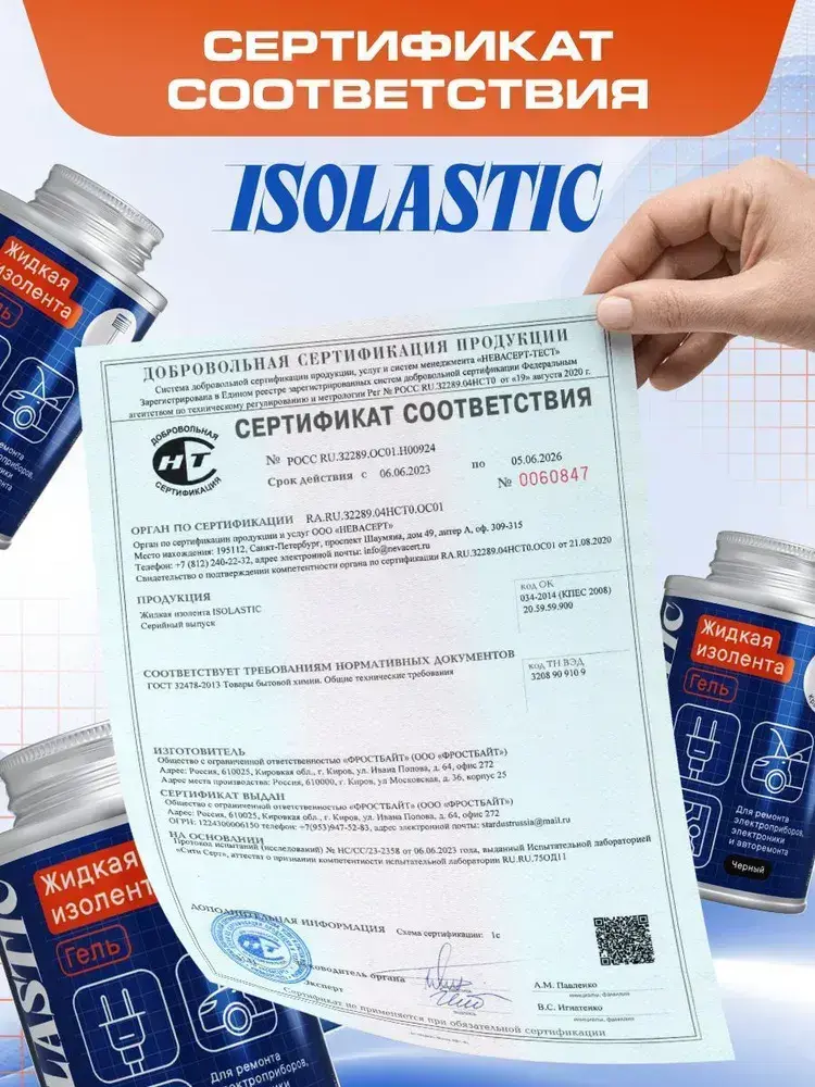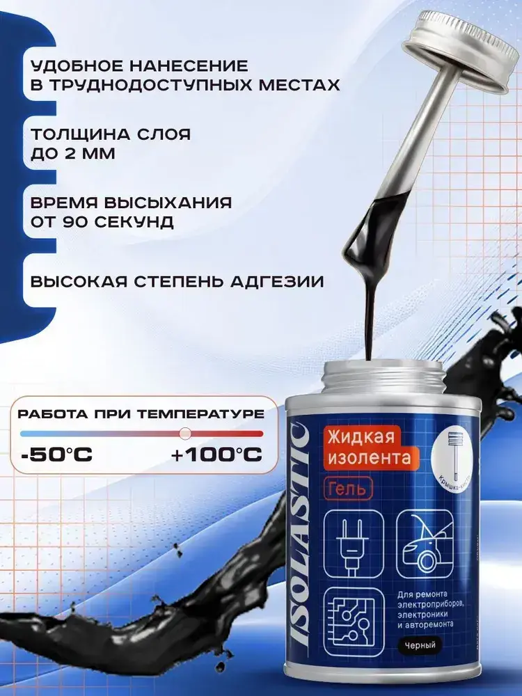 Изолента жидкая изолента-гель герметик водонепроницаемый с кисточкой ISOLASTIC черный, 115 мл