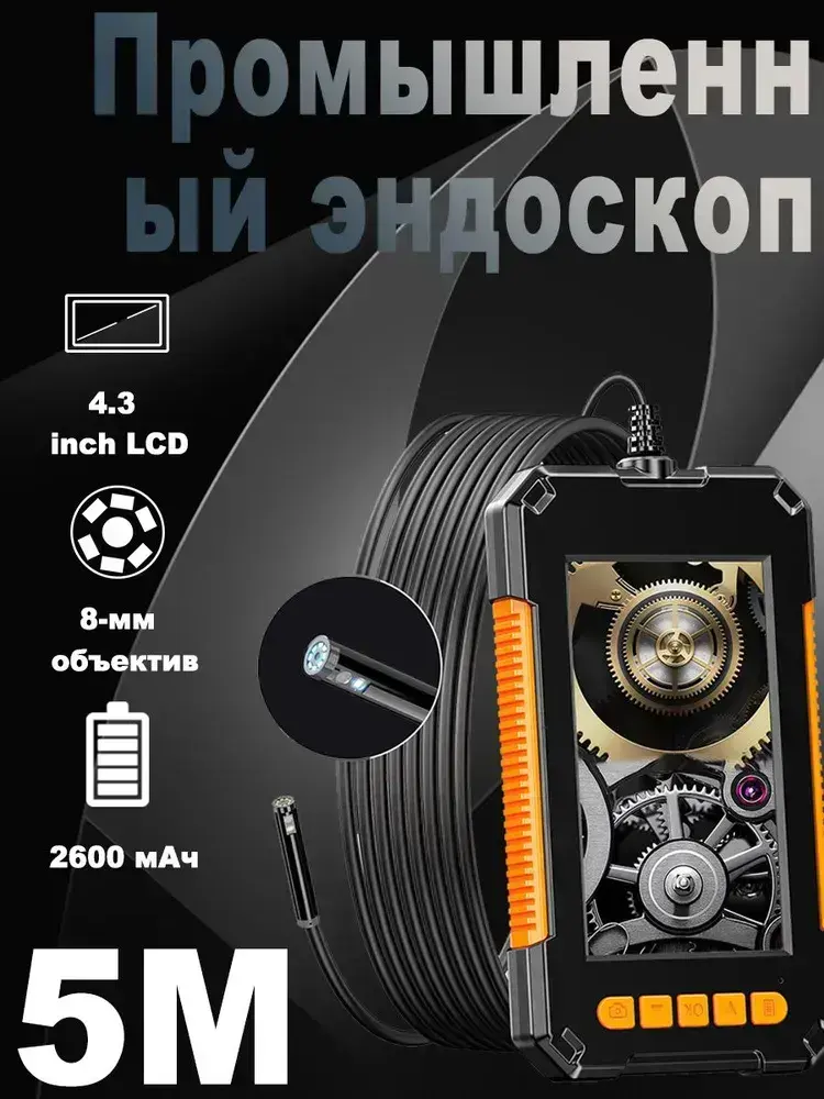 jingleszcn Экран 4,3 дюйма 8 мм 2 камеры портативный эндоскоп 5 м