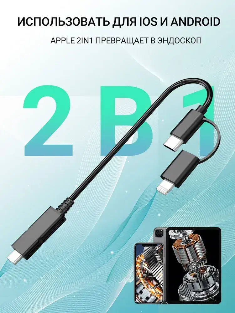 jingleszcn Поворотный эндоскоп 6.4мм/поворот 360 /HD 1080P автомобильная камера Кабель 1 м Android,IOS