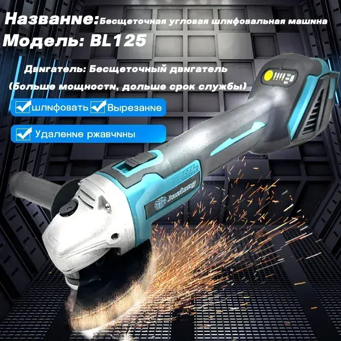 JunLong Аккумуляторная угловая шлифовальная машина с бесщеточным двигателем 125 мм 21 В