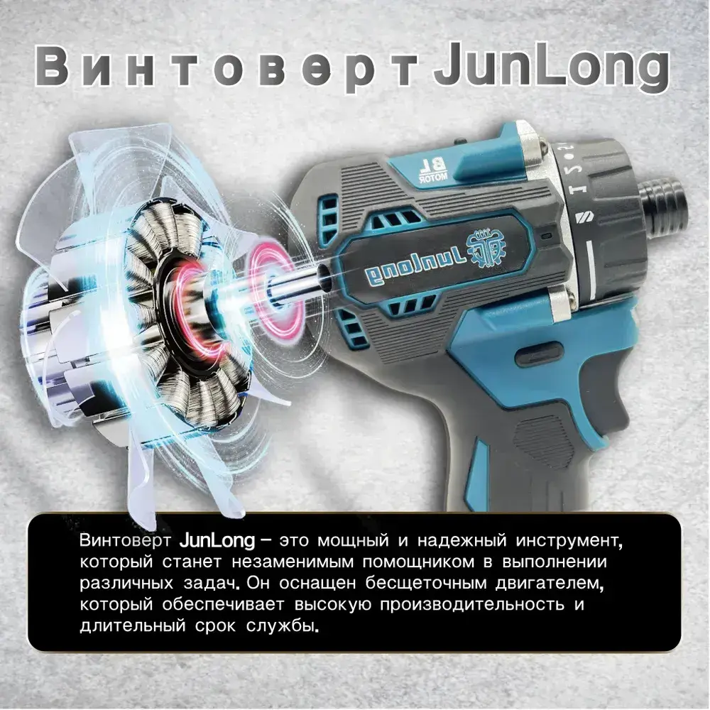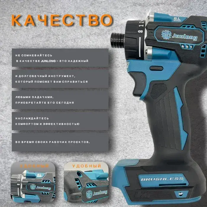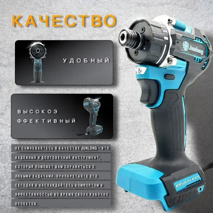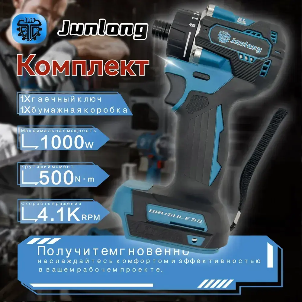 JunLong Бесщеточный аккумуляторный шуруповерт 21 В, 500 Нм, 4100 об/мин (без АКБ)