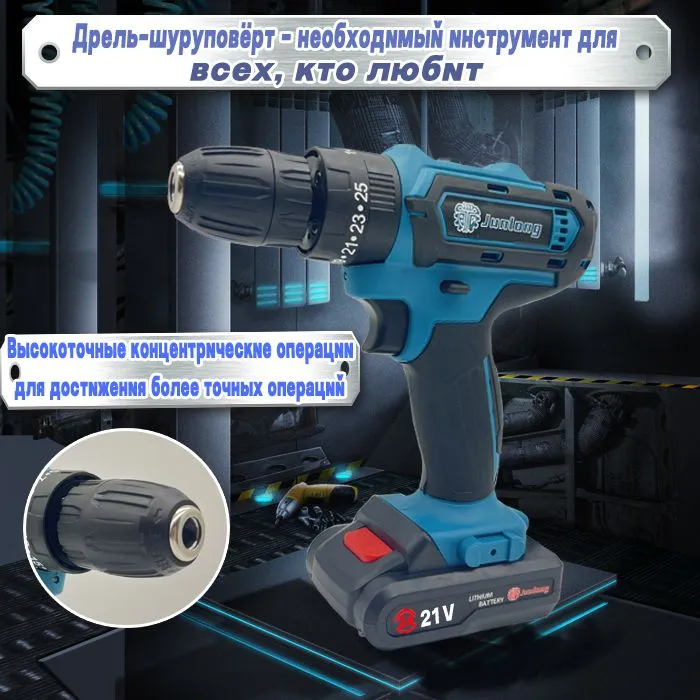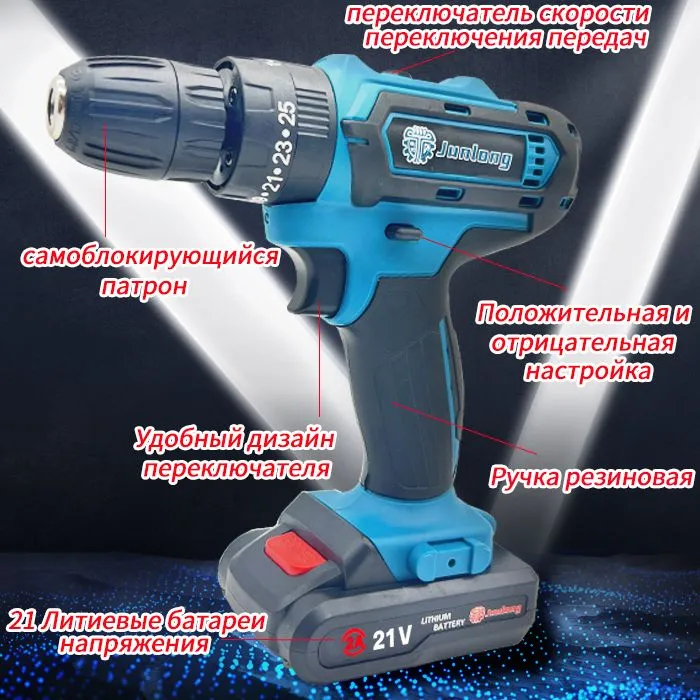 Junlong Дрель-шуруповерт, 21 В, 420 Нм, 2 АКБ