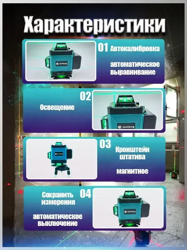 Junlong Лазерный уровень/нивелир Зеленыйлуч