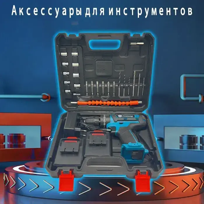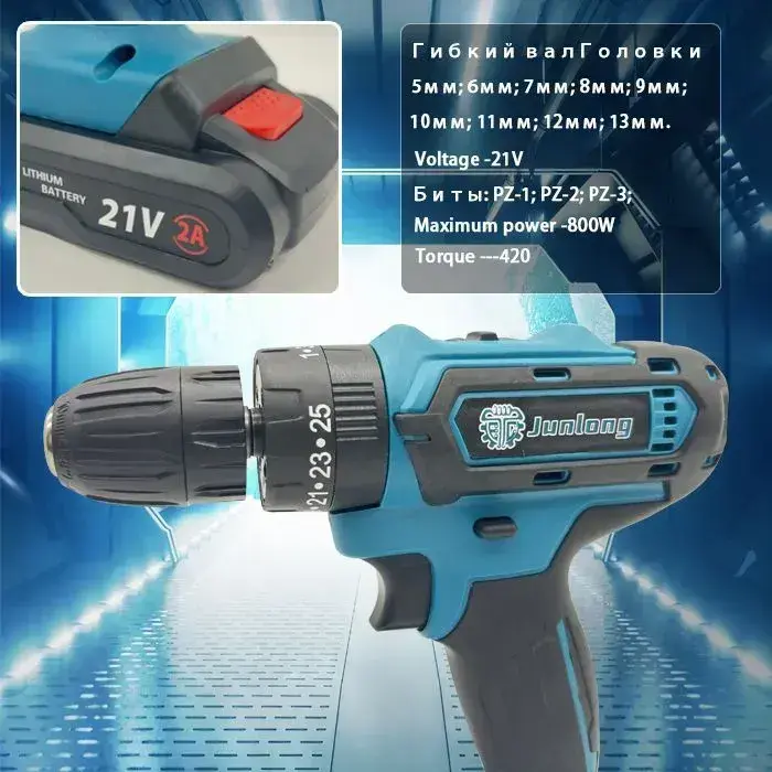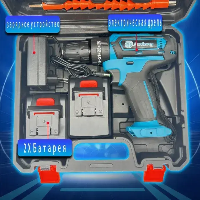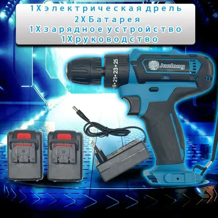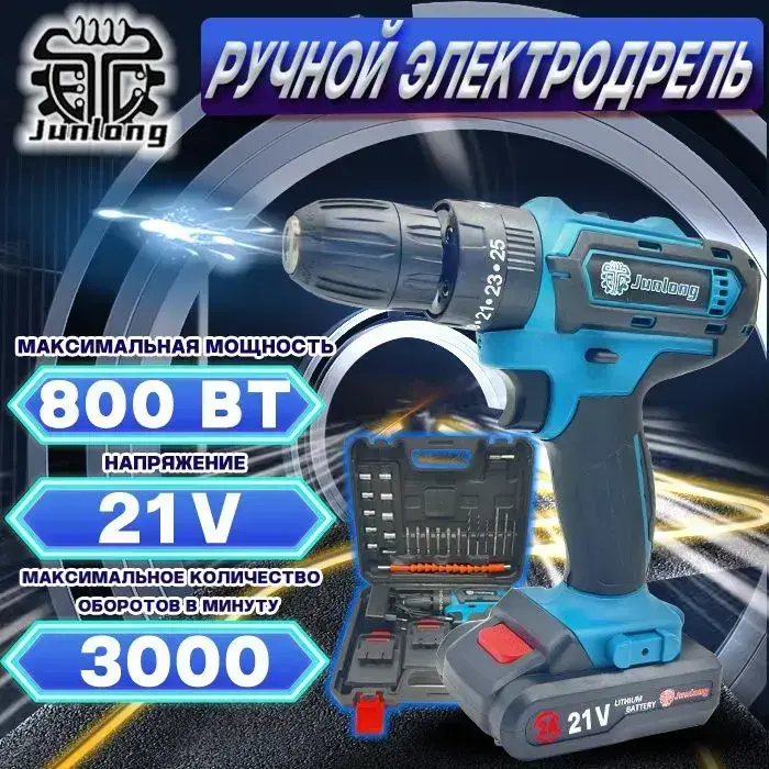 JunLong Шуруповерт - дрель аккумуляторный, 21 В, 420 Нм, 2 АКБ