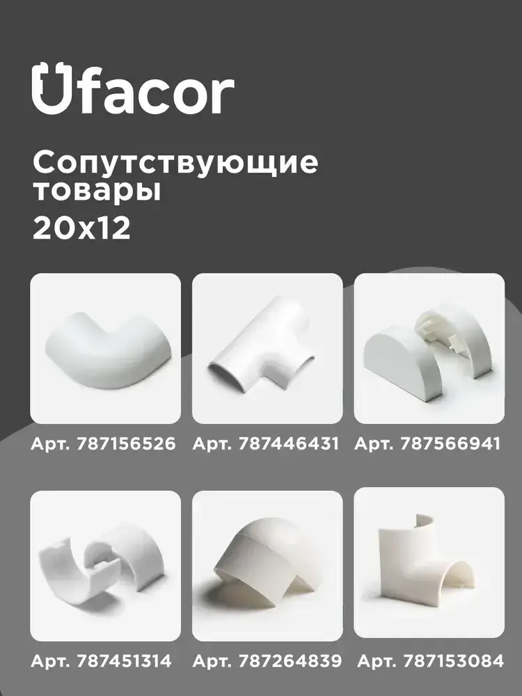 Кабель-канал полукруглый 20*12*1000 Уфакор АРКА (3 шт.), белый