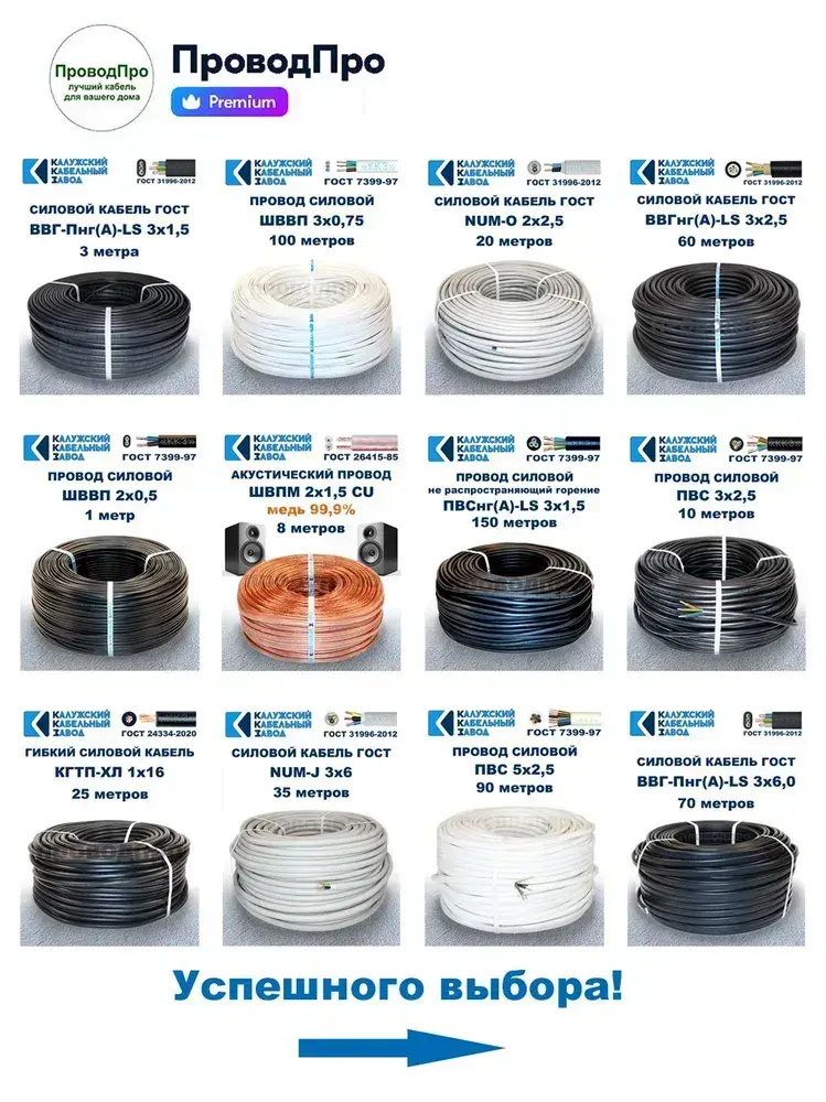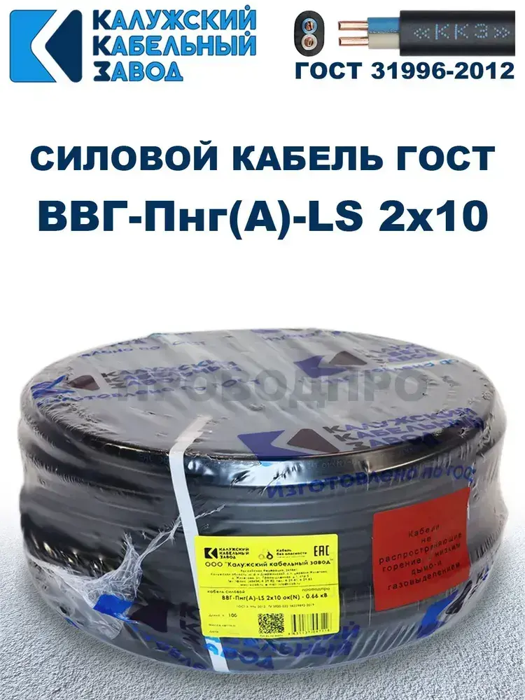 Кабель ВВГ-Пнг(А)-LS 2х10 ГОСТ, 10 метров, Калужский кабельный завод