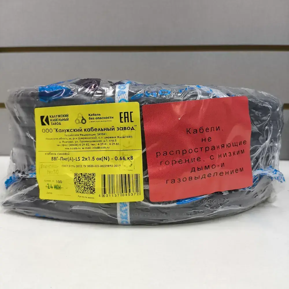 Кабель ВВГ-Пнг(А)-LS 2х1.5 ГОСТ бухта 100 метров Калужский Кабельный Завод