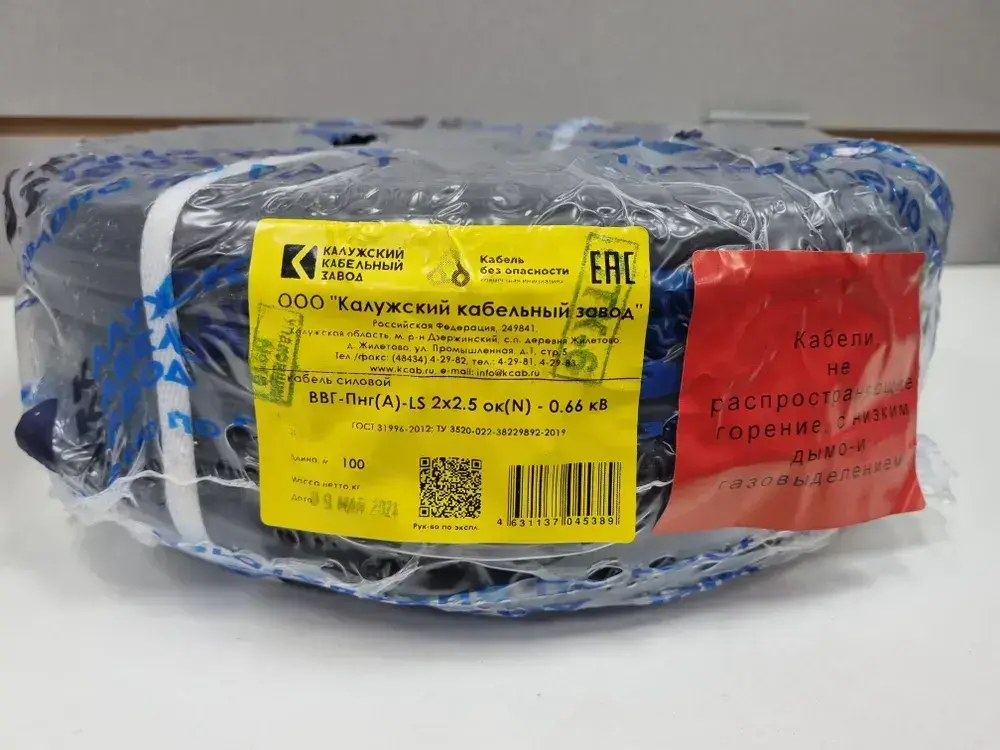 Кабель ВВГ-Пнг(А)-LS 2х2.5 ГОСТ бухта 100 метров Калужский Кабельный Завод