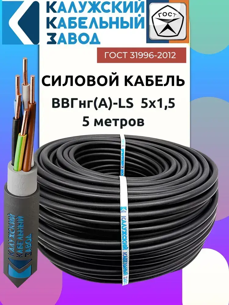 Кабель ВВГнг(А)-LS 5х1.5 ГОСТ круглый 5 метров Калужский кабельный завод
