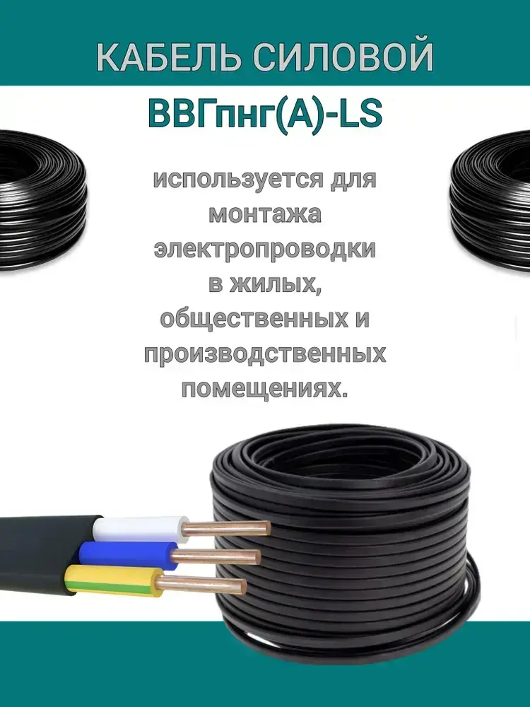 кабели Силовой кабель 3 x 1.5 мм², 50 м, 4000 г