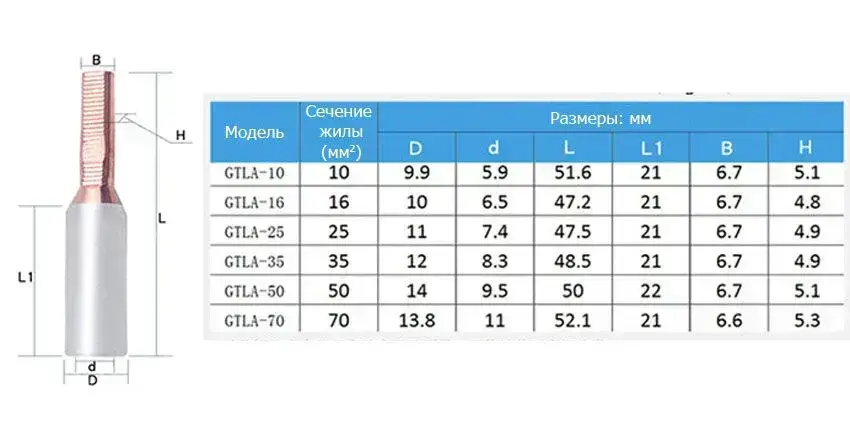 Кабельный наконечник штыревой алюмо-медный НШАМ для СИП кабеля GTLA комплект 5 шт. + 5 изоляционных колпачков