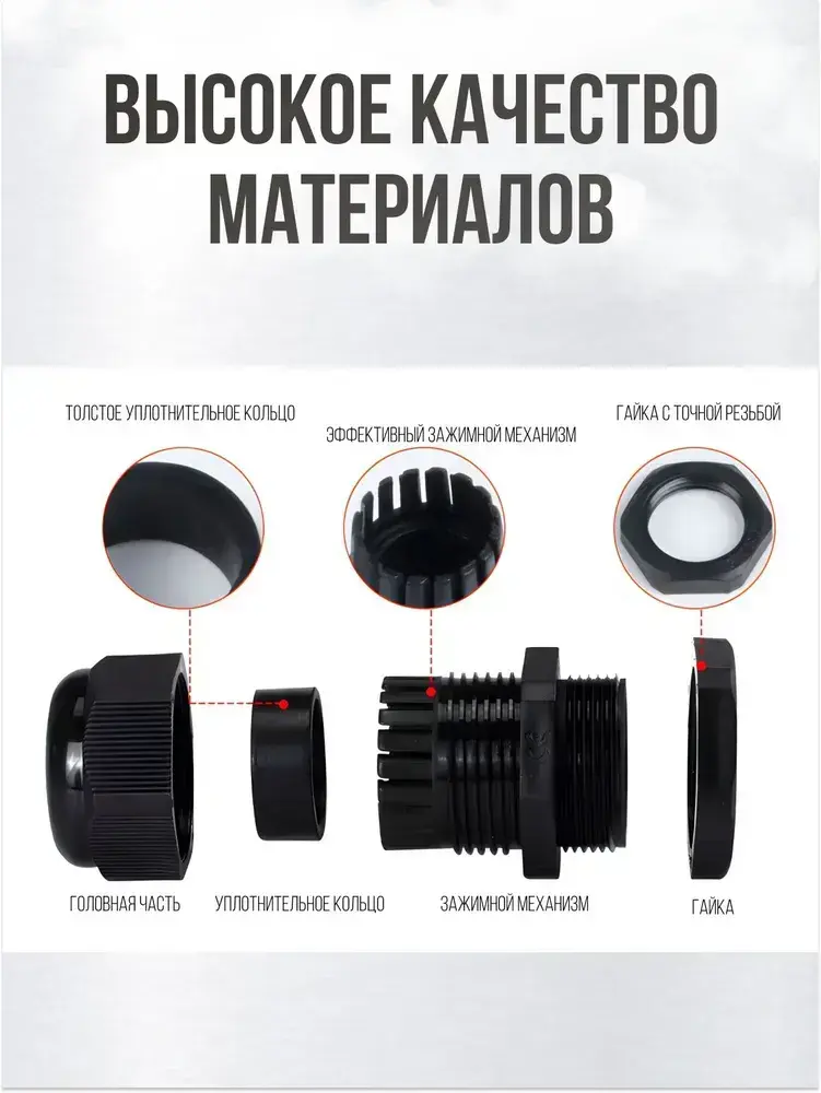 Кабельный ввод, гермоввод, сальник PG9(4-8 мм) IP68 5 шт