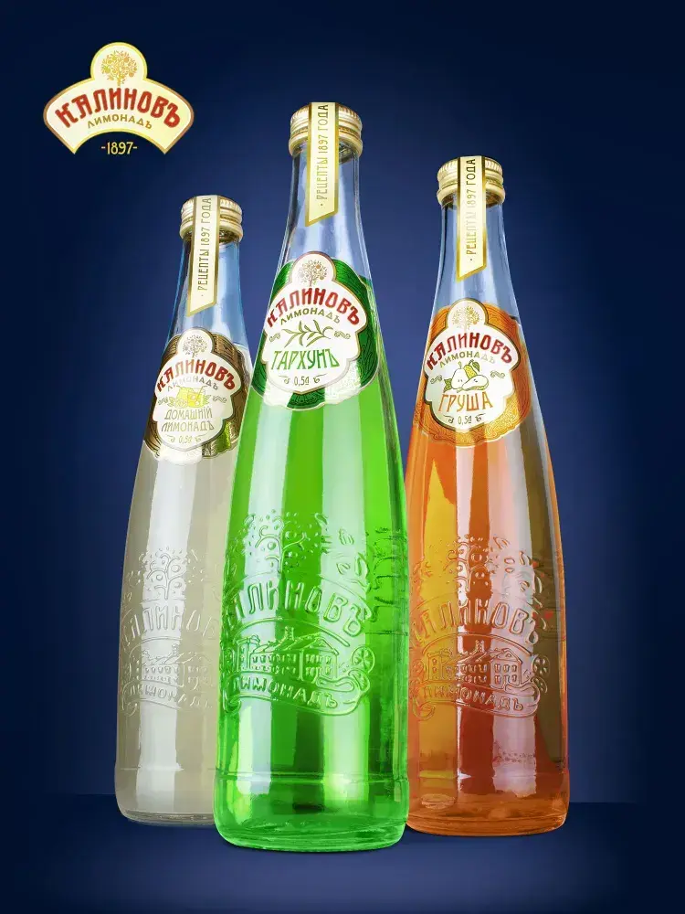 Калиновъ Лимонадъ Винтажный Тархунъ, газированный, в стекле, 0,5 л