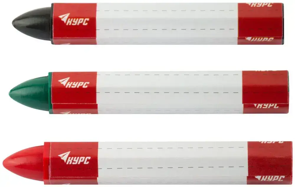 Карандаши строительные восковые набор 3 шт. (черный, зеленый, красный ) 95 мм