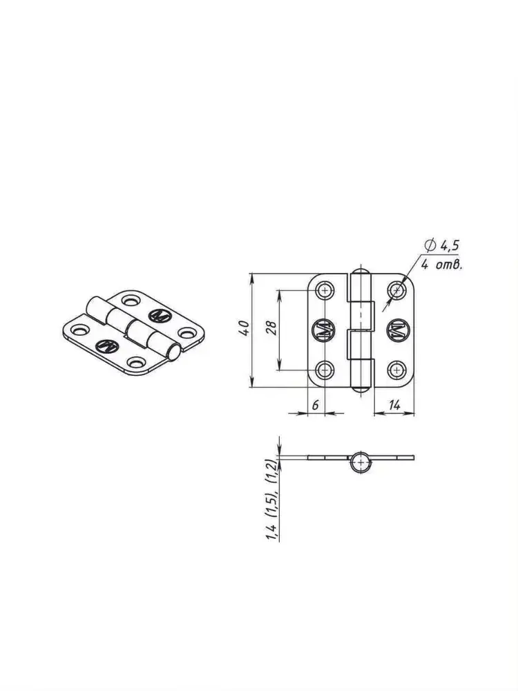 Карточная петля 36 мм на 40 мм мебельная-10шт