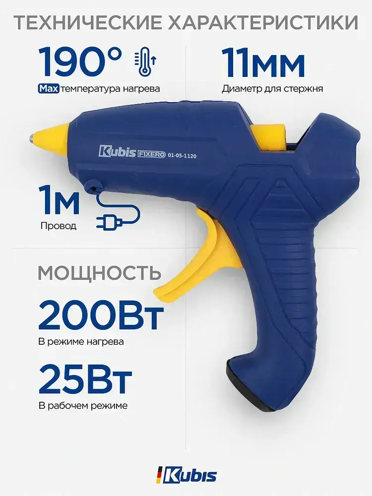 Клеевой пистолет 11 мм профессиональный, для рукоделия, KUBIS, 25 (200) Вт, 10 г/мин