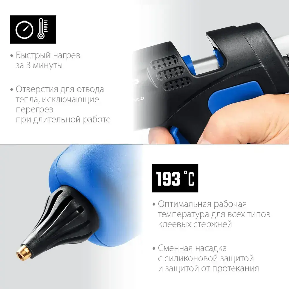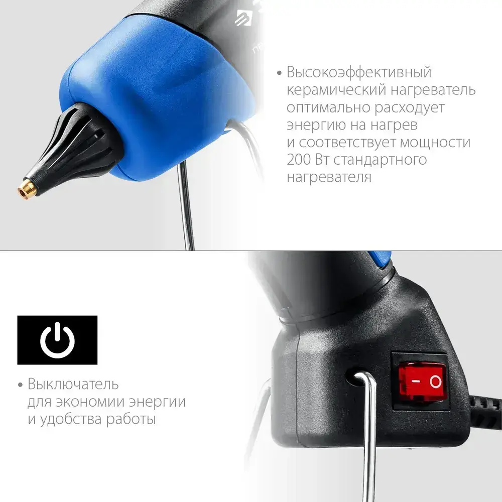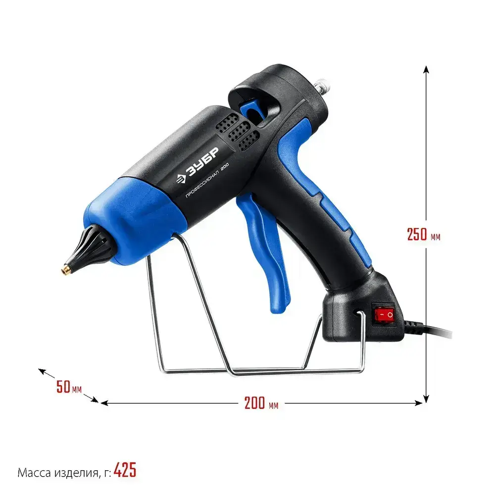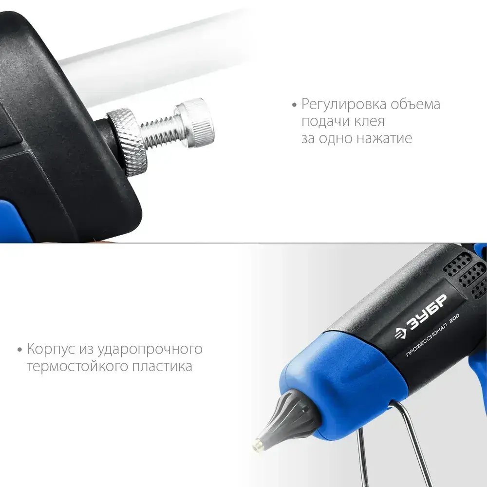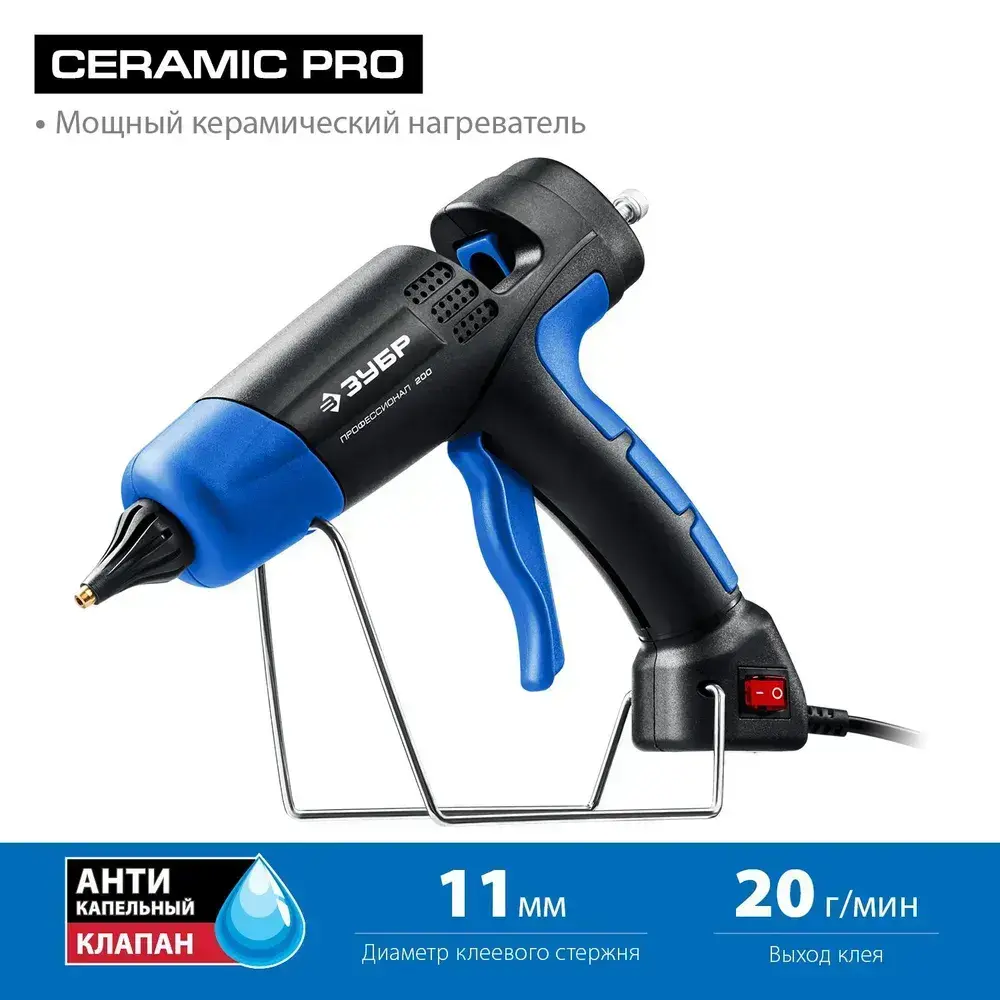 Клеевой пистолет электрический, диаметр стержня 11 мм, выход клея 20 г/мин, выключатель, ЗУБР Профессионал, 06852-11