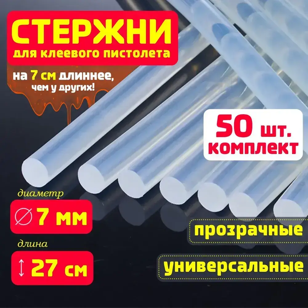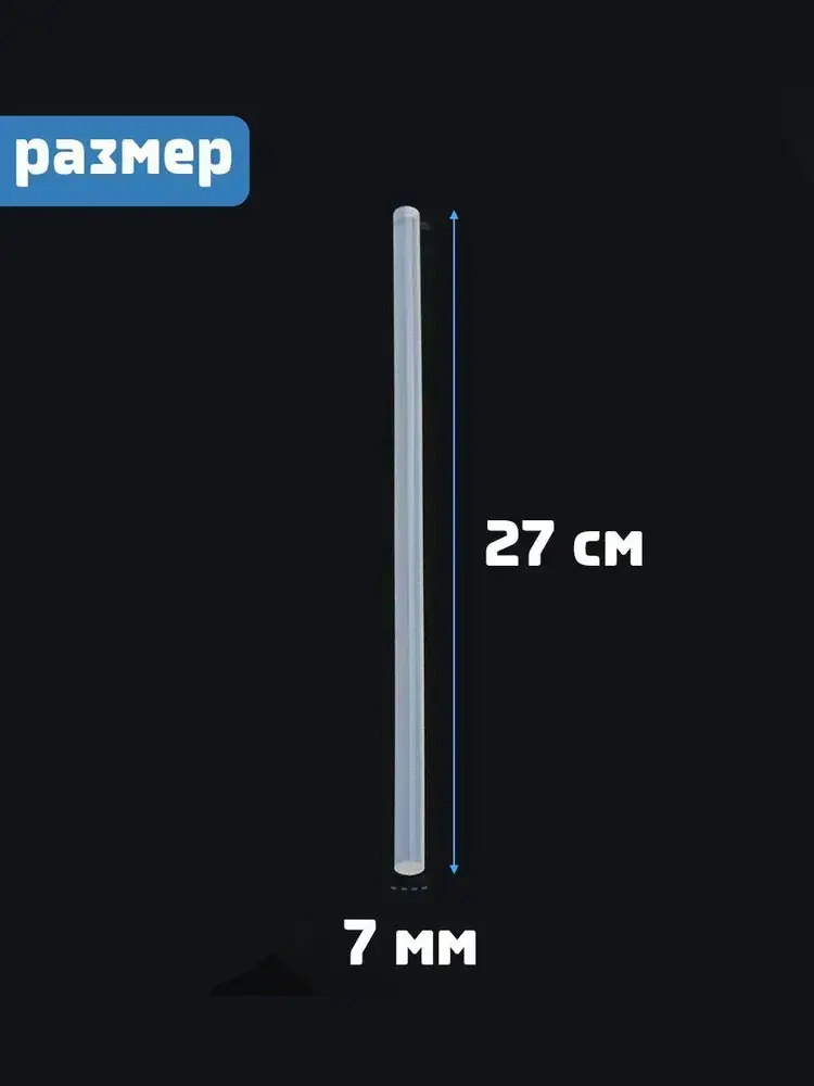 Клеевые стержни для клеевого пистолета 7 мм х 270 мм, термоклей, прозрачные 50 штук.