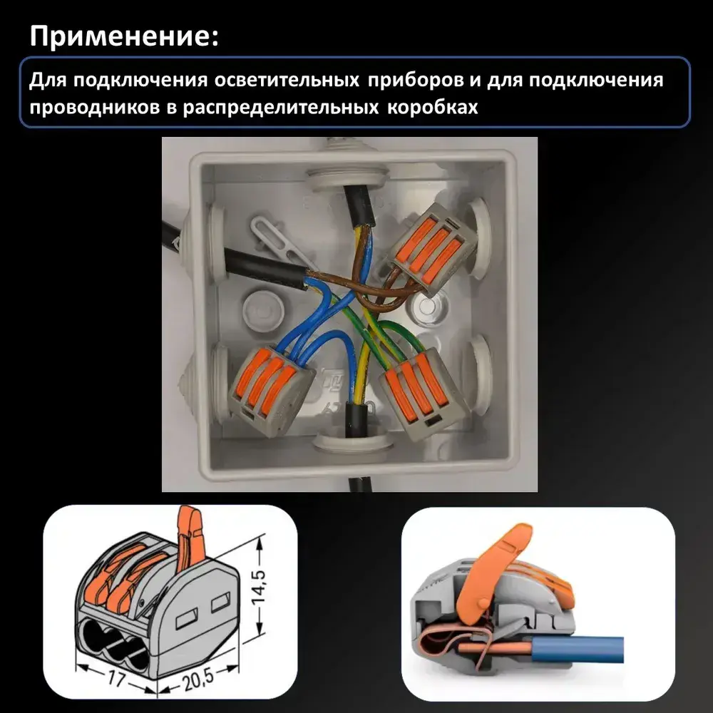 Клемма для проводов трехконтактная, 50 шт, тип WAGO (Ваго), соединительная для проводов