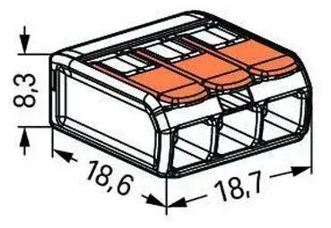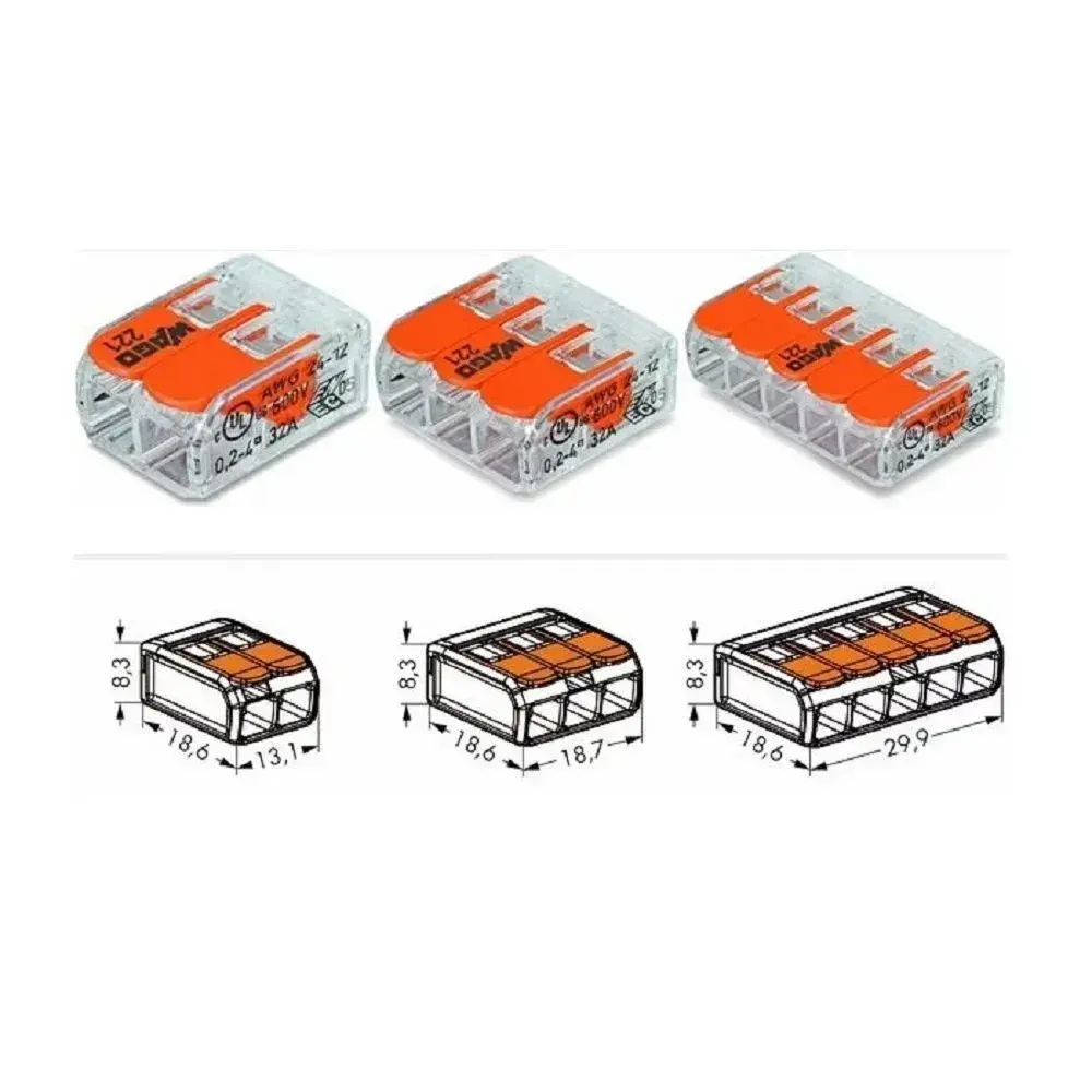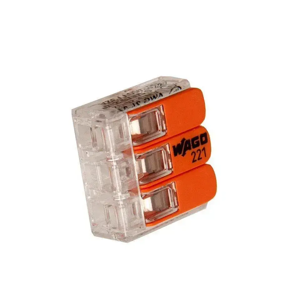 Клемма Wago 221-413, 3-х проводная для соединения проводов (Ваго), 10 шт