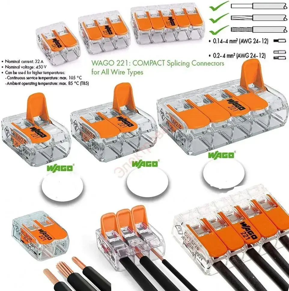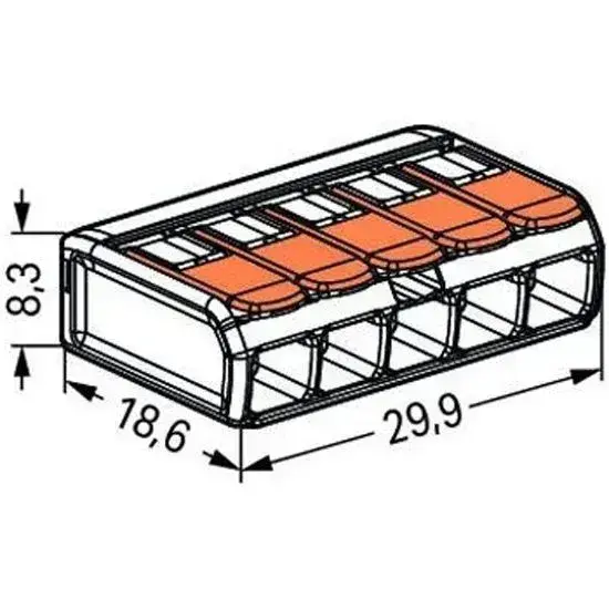 Клемма Wago 221-415 5-проводная для соединения проводов, 10 шт.