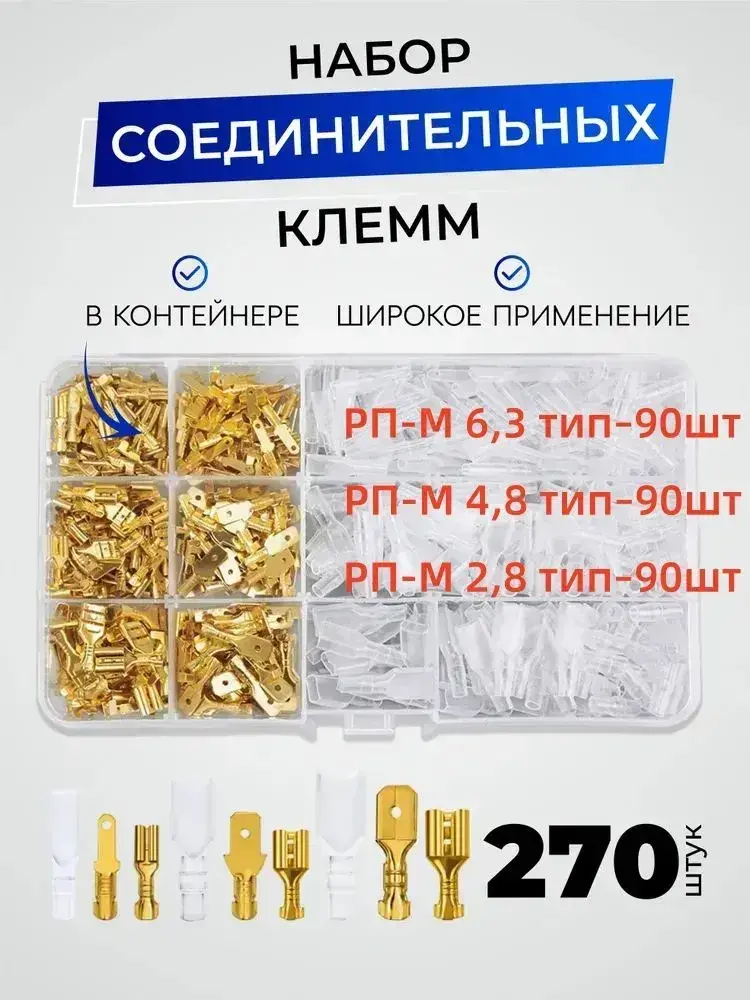 Клеммы для проводов обжимные, соединительные, кабельные наконечники в кейсе, Набор 270 штук.