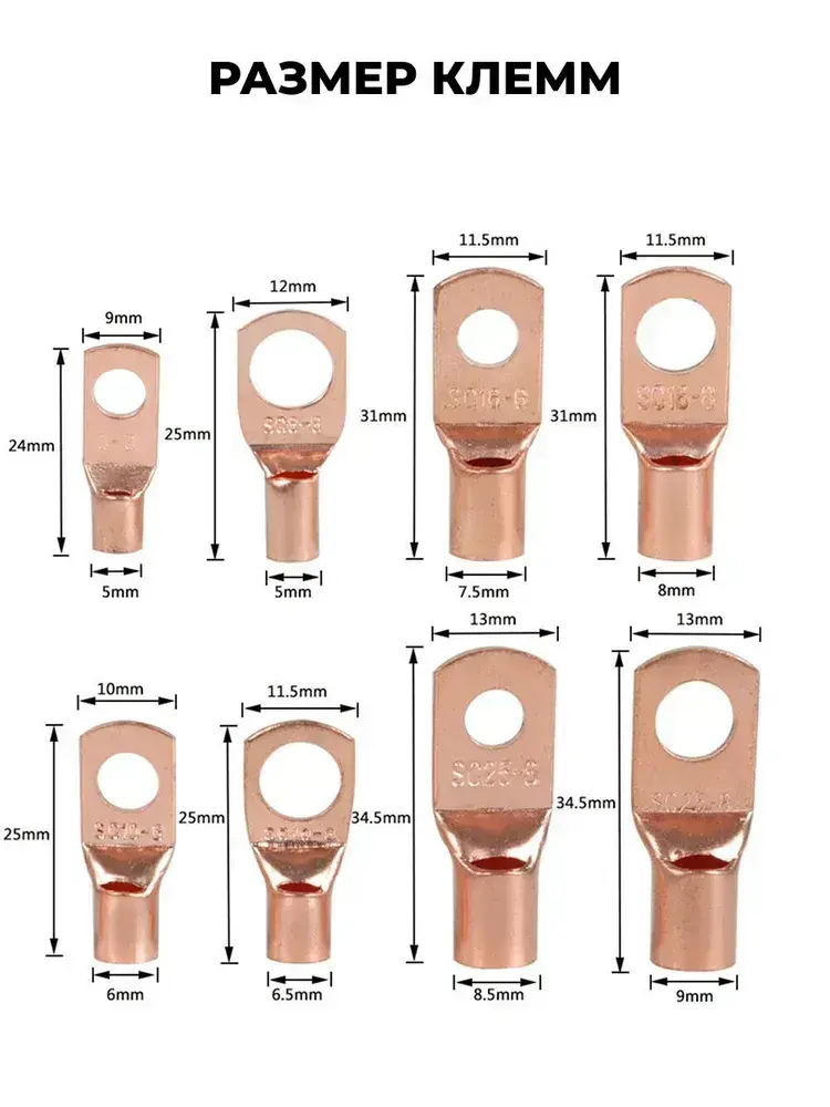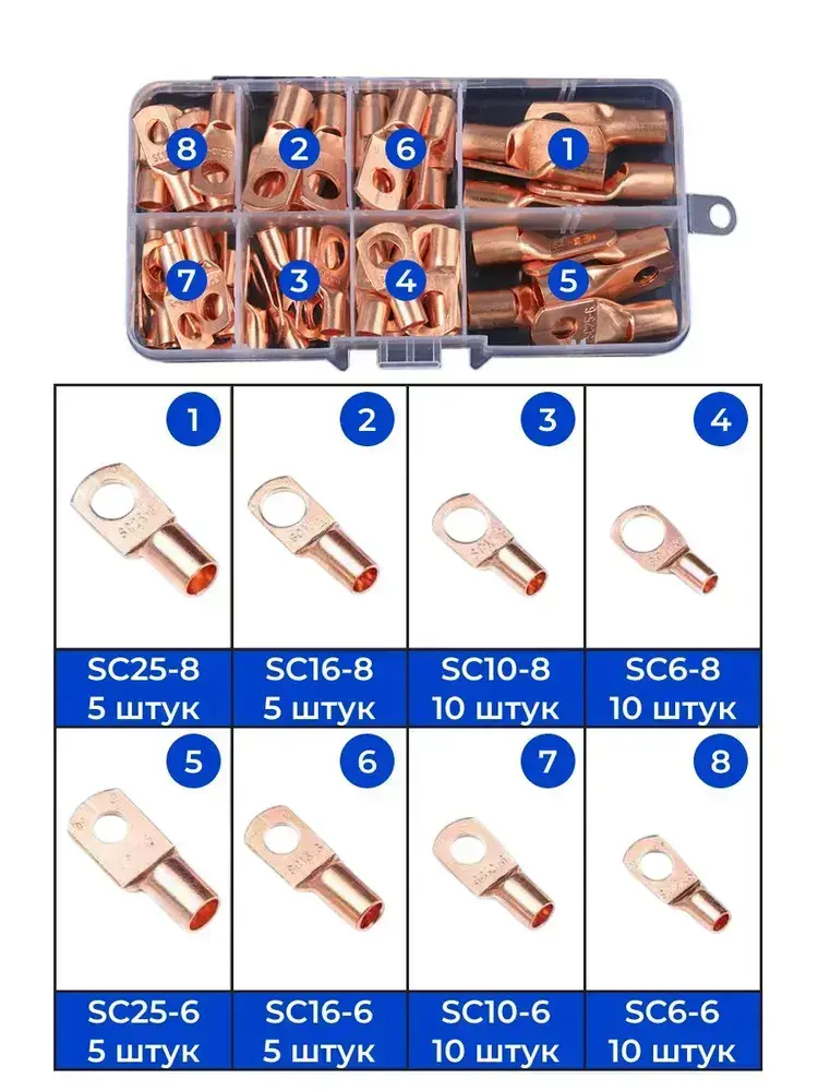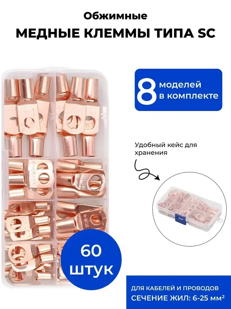 Клеммы обжимные медные SC для проводов, набор 60 шт соединительные, под обжим