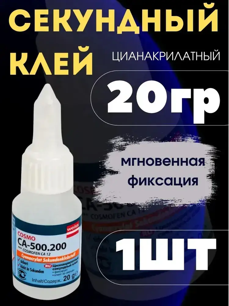 Клей CA-500.200 20г, Цианоакрилатный секундный клей мгновенной фиксации супер-клей 1 шт