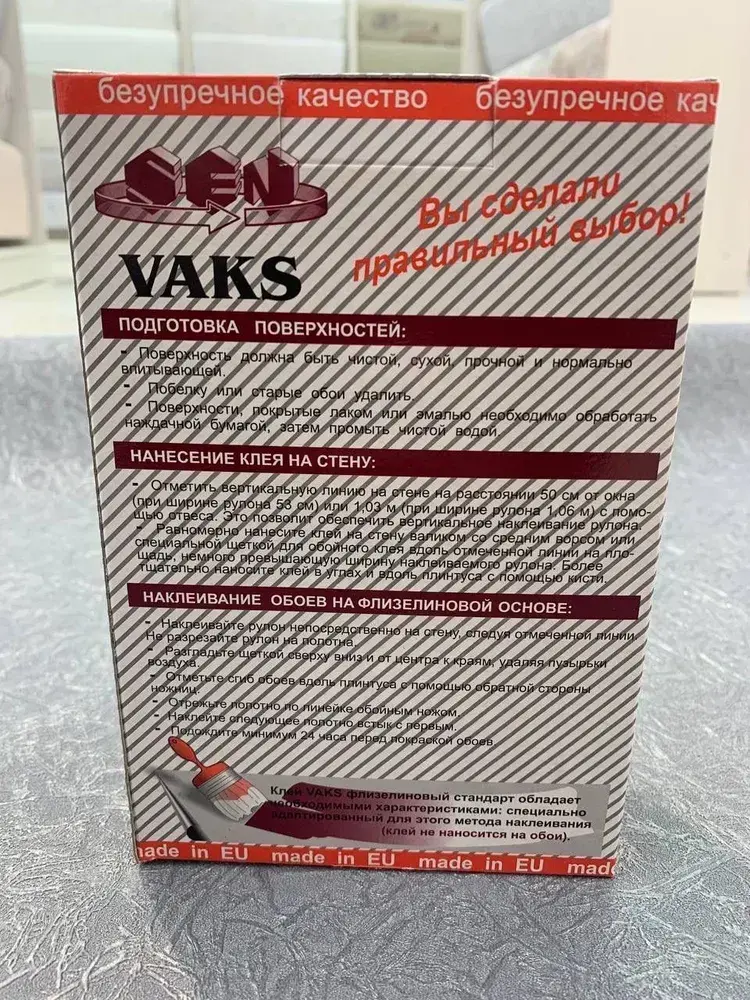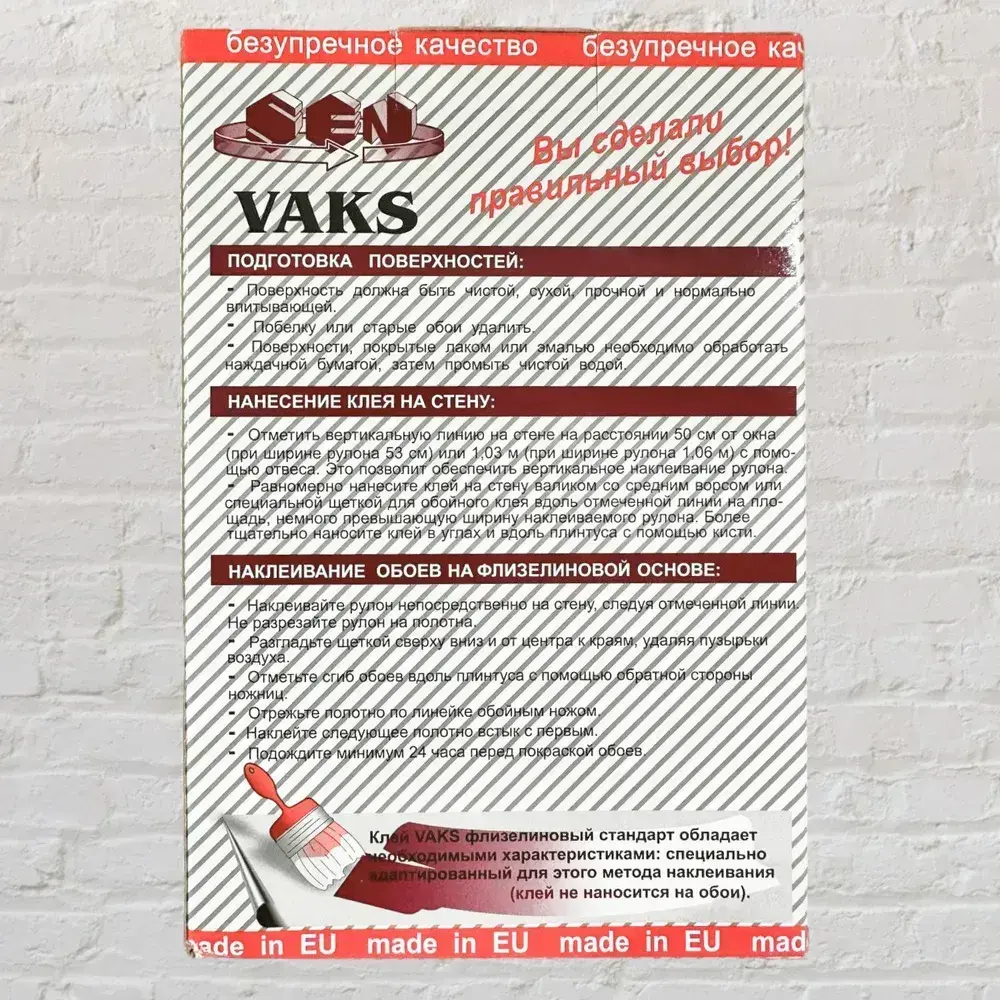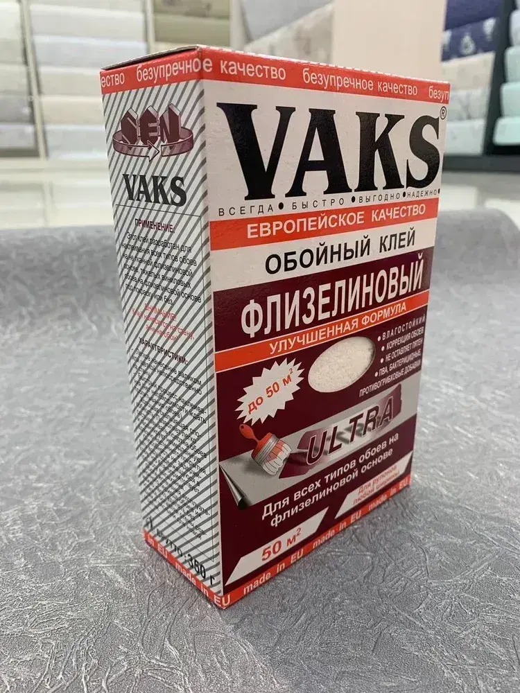Клей для флизелиновых обоев VAKS с бактерицидными добавками. Арт. ВАКС обойный ультра, 350 г.