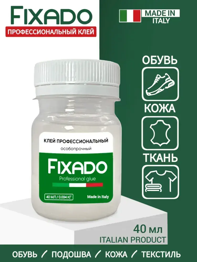 Клей для обуви и подошв, кожи и ПВХ лодок. Водостойкий Прозрачный FIXADO 40мл