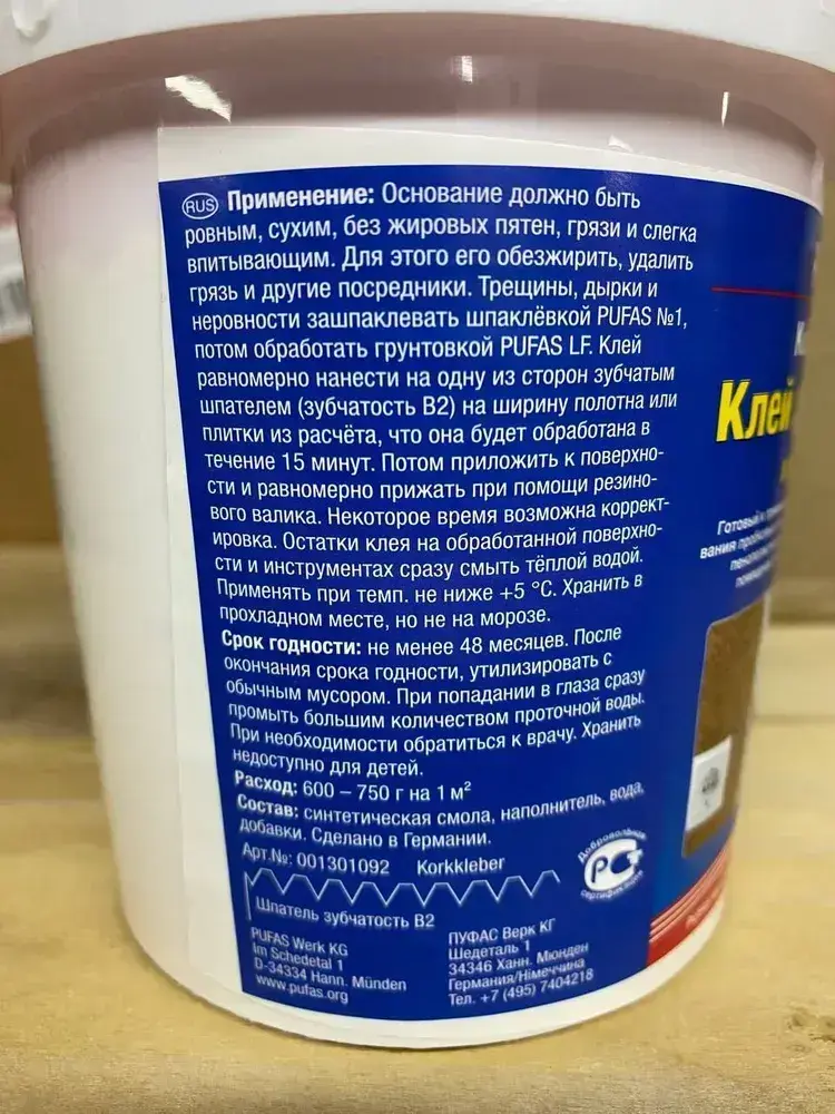 Клей для пробки, Pufas, 1 кг. Производство Германия Пуфас