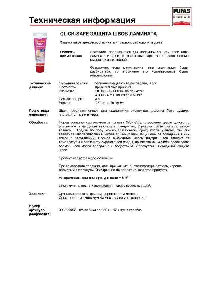 Клей для швов ламината Pufas 250 г. Германия Пуфас клей герметик для стыков ламината и паркетной доски