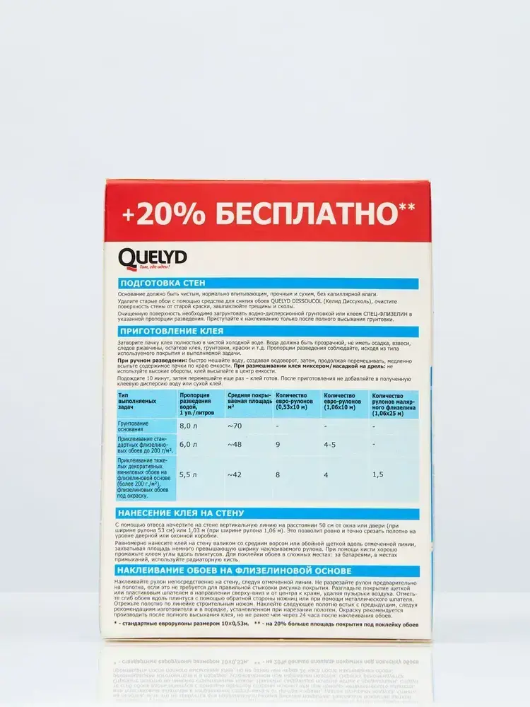 Клей д/обоев QUELYD ПРОМО (S+20%) СПЕЦ-Флизелин 300г 50035118