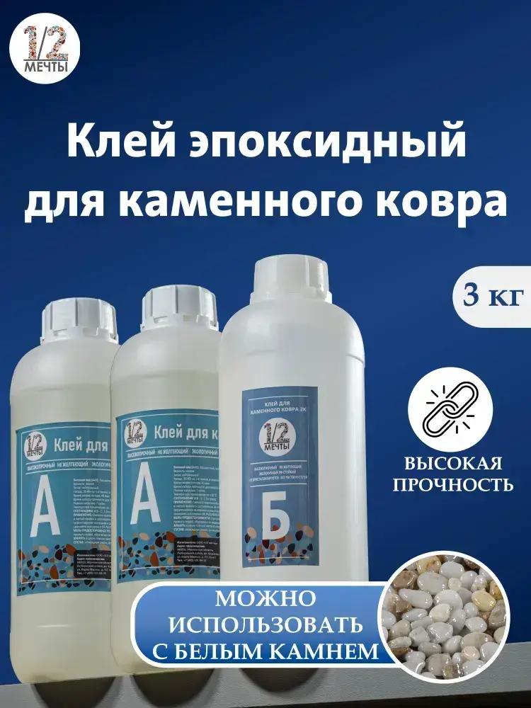 Клей эпоксидный для каменного ковра прозрачный уличный алифатический двухкомпонентный 1/2 мечты 3кг