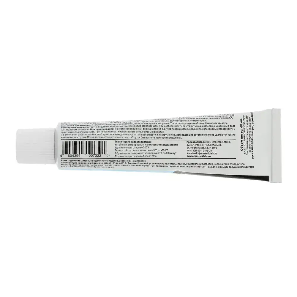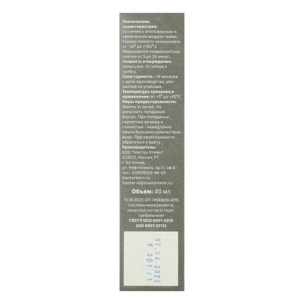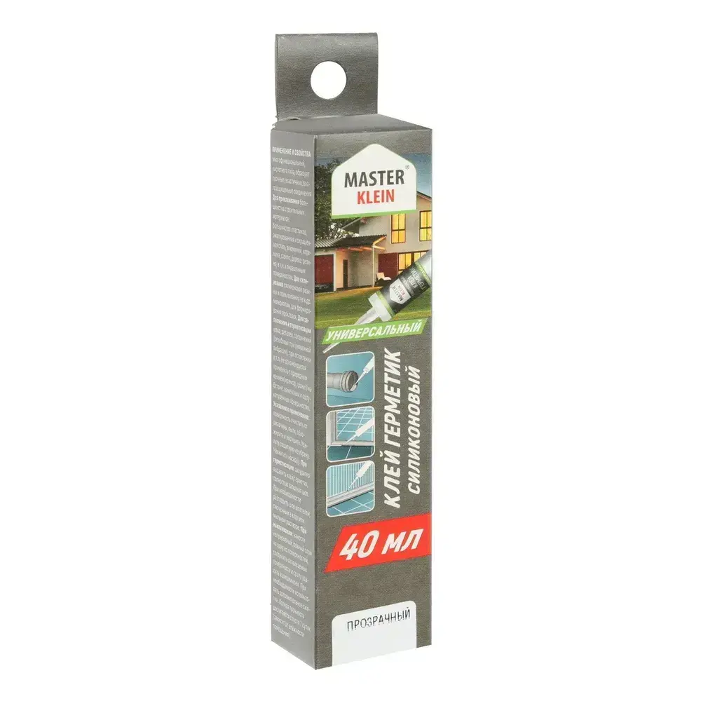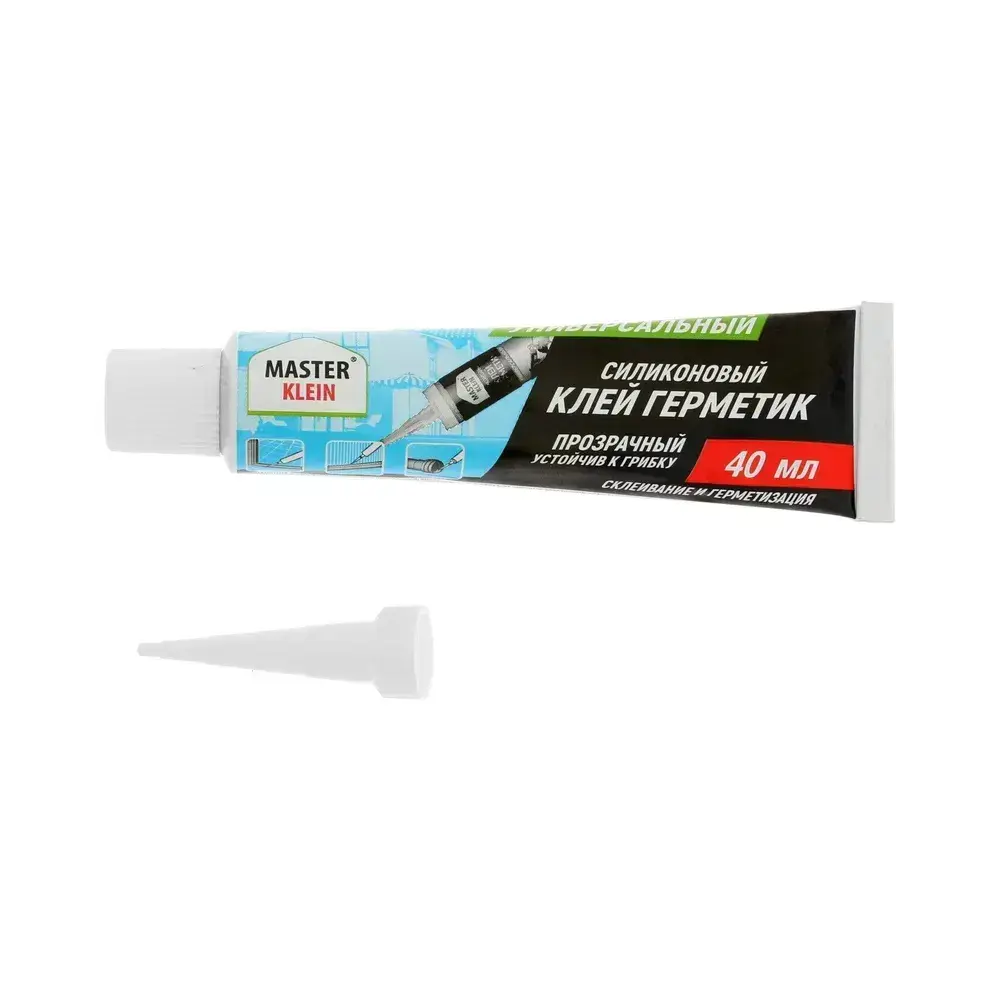 Клей-герметик силиконовый многофункциональный кислотного типа профессиональный 40мл (прозрачный, алюм.туба в инд.уп.) "Master Klein"