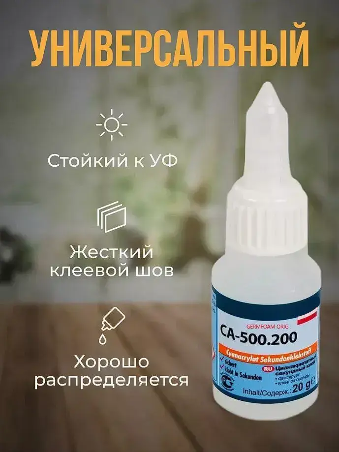 Клей Germfoam; CA-500.200; Супер-клей универсальный строительный цианакрилатный секундный