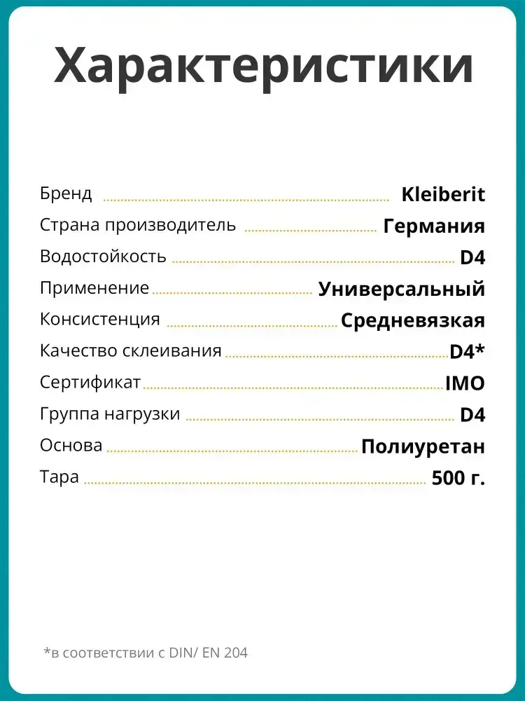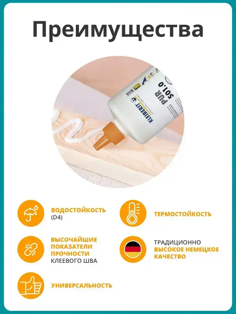 Клей монтажный Kleiberit (Клейберит) 501.0 полиуретановый, D4 0,5кг