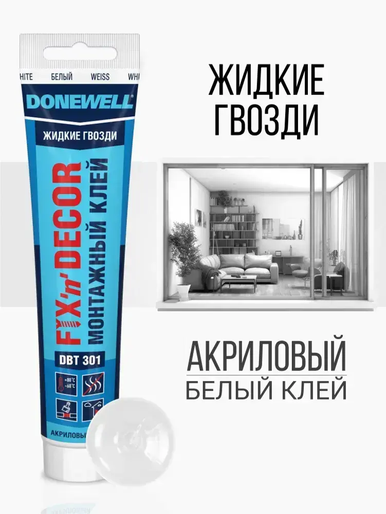 Клей монтажный "жидкие гвозди" DONEWELL FIX-N-DECOR акриловый морозостойкий DBT-301 Белый
