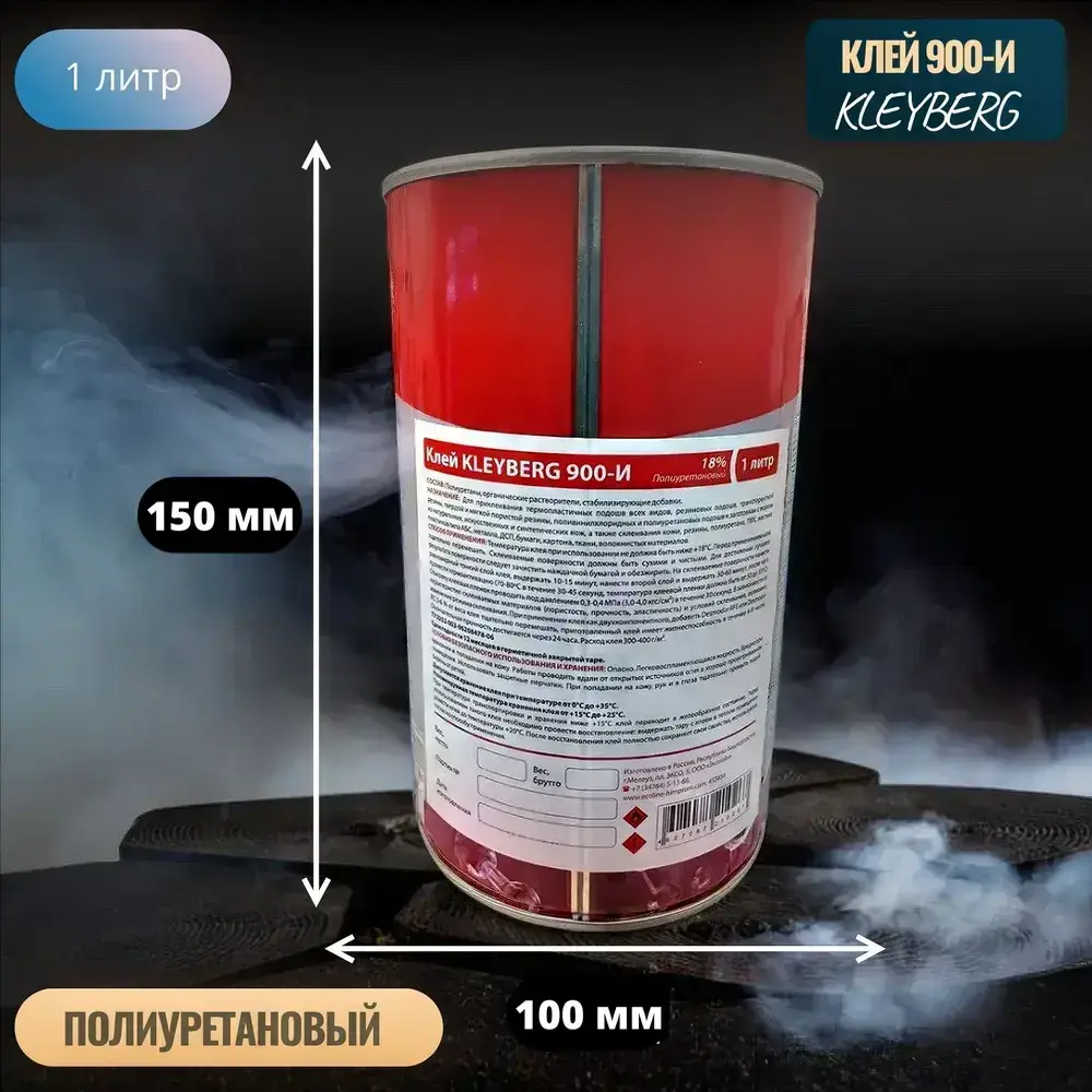 Клей полиуретановый водостойкий 900-И 1000 мл, 1 шт. Для обуви/подошвы, ПВХ, экокожи. Прозрачный обувной десмокол. Kleyberg/Клейберг