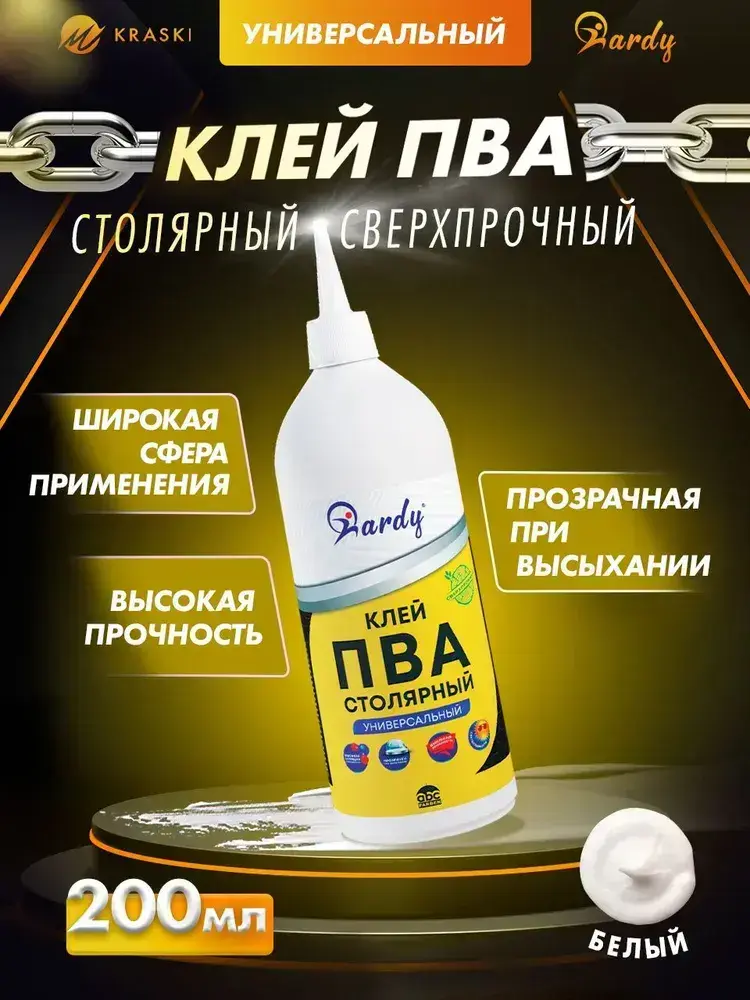 КЛЕЙ ПВА Столярный Hardy Строительный Сверхпрочный Универсальный 200 мл.