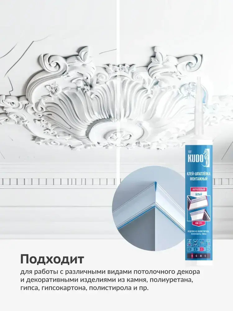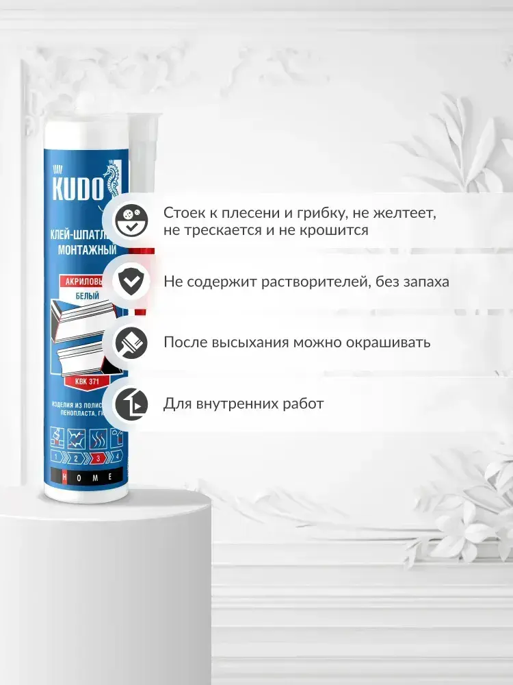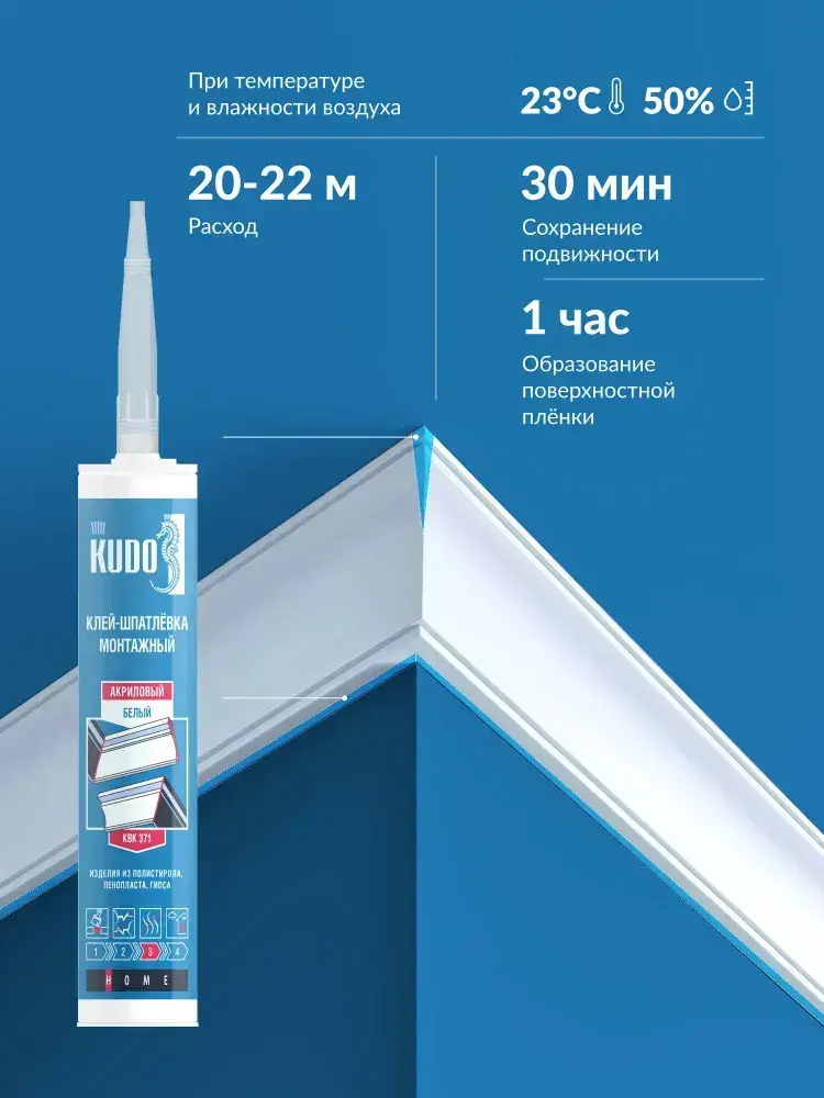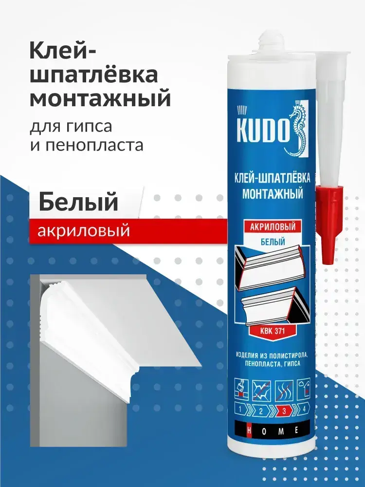 Клей-шпатлевка на акриловой основе KUDO НОМЕ, белый, 280 мл, KBK-371