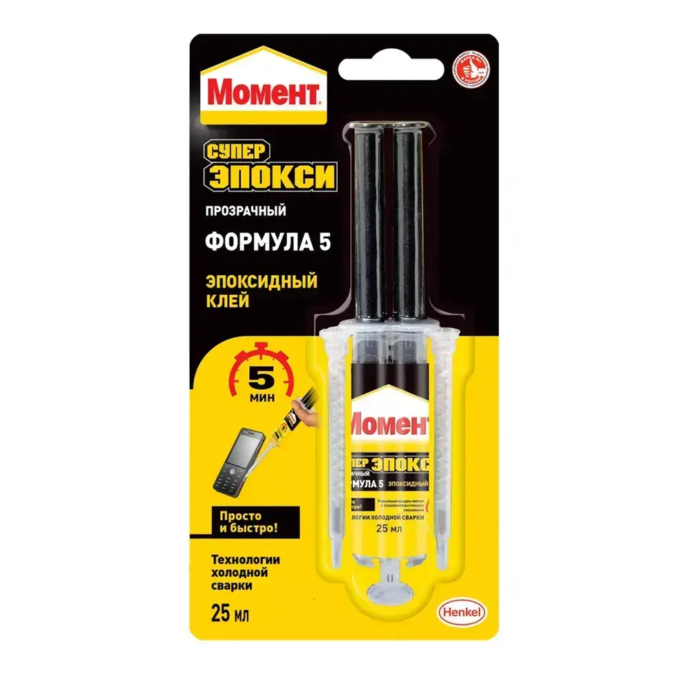 Клей универсальный эпоксидный Момент Супер Эпокси Формула 5 прозрачный 25 мл шприц