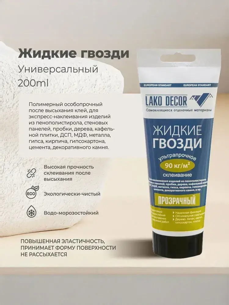Клей жидкие гвозди для стеновых ПВХ панелей LAKO DECOR, 200 мл, 1 шт.