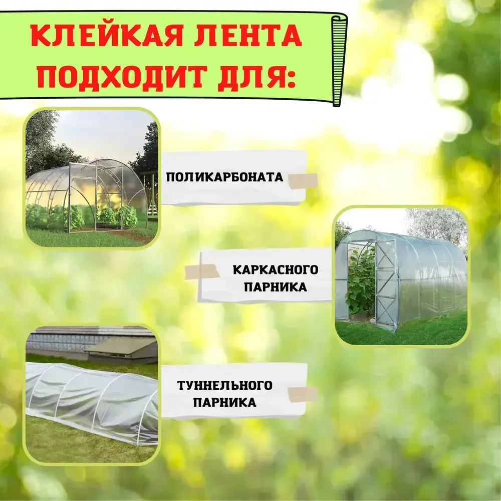 Клейкая лента для ремонта теплиц 150 мкм, 5 см на 9,5 м, скотч тепличный для ремонта парников, поликарбоната MG