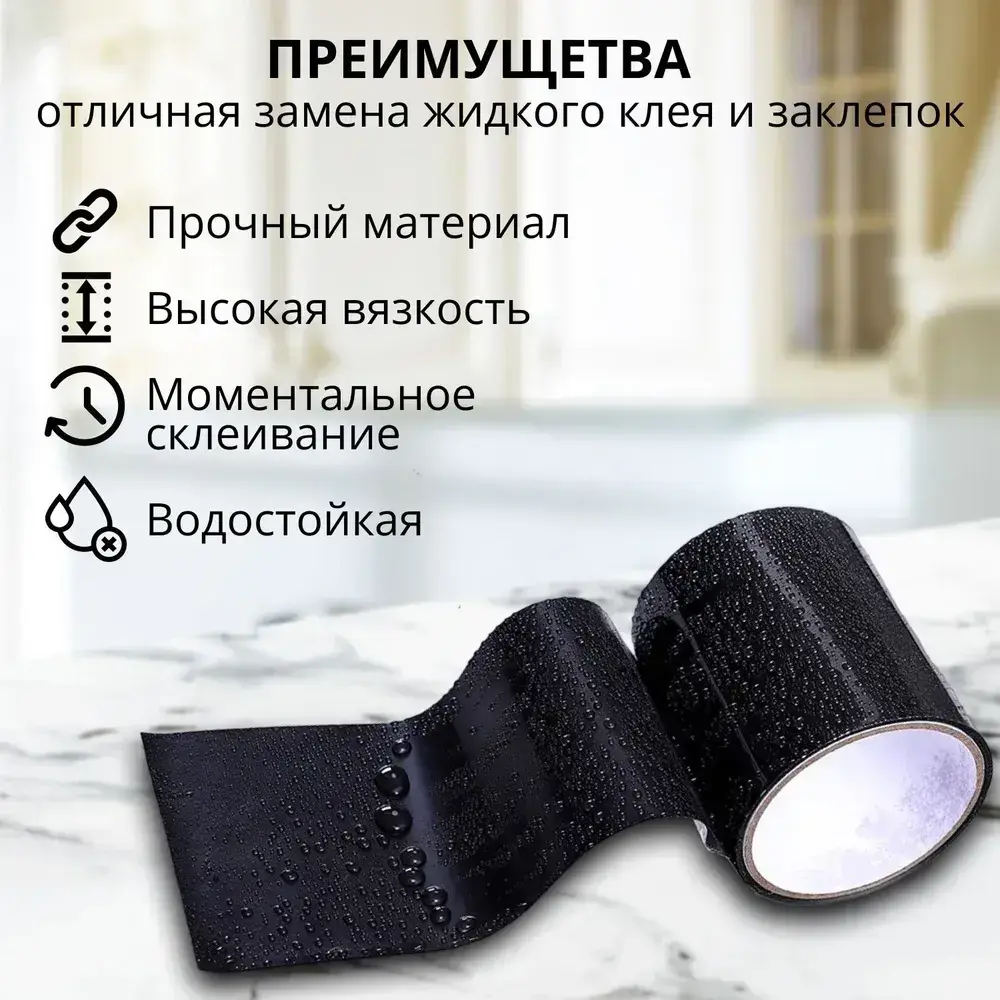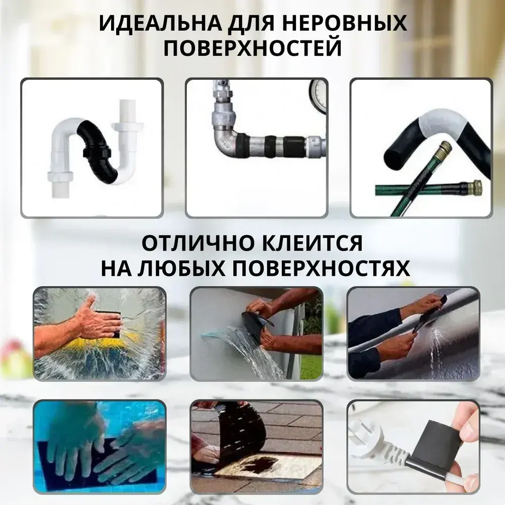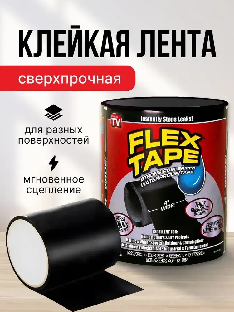 Клейкая лента Flex Tape (Флекс Тейп) сверхсильная водонепроницаемая универсальная гидроизоляционная монтажная, для бассейна, для труб, черная, 100*10 см, 1 шт.