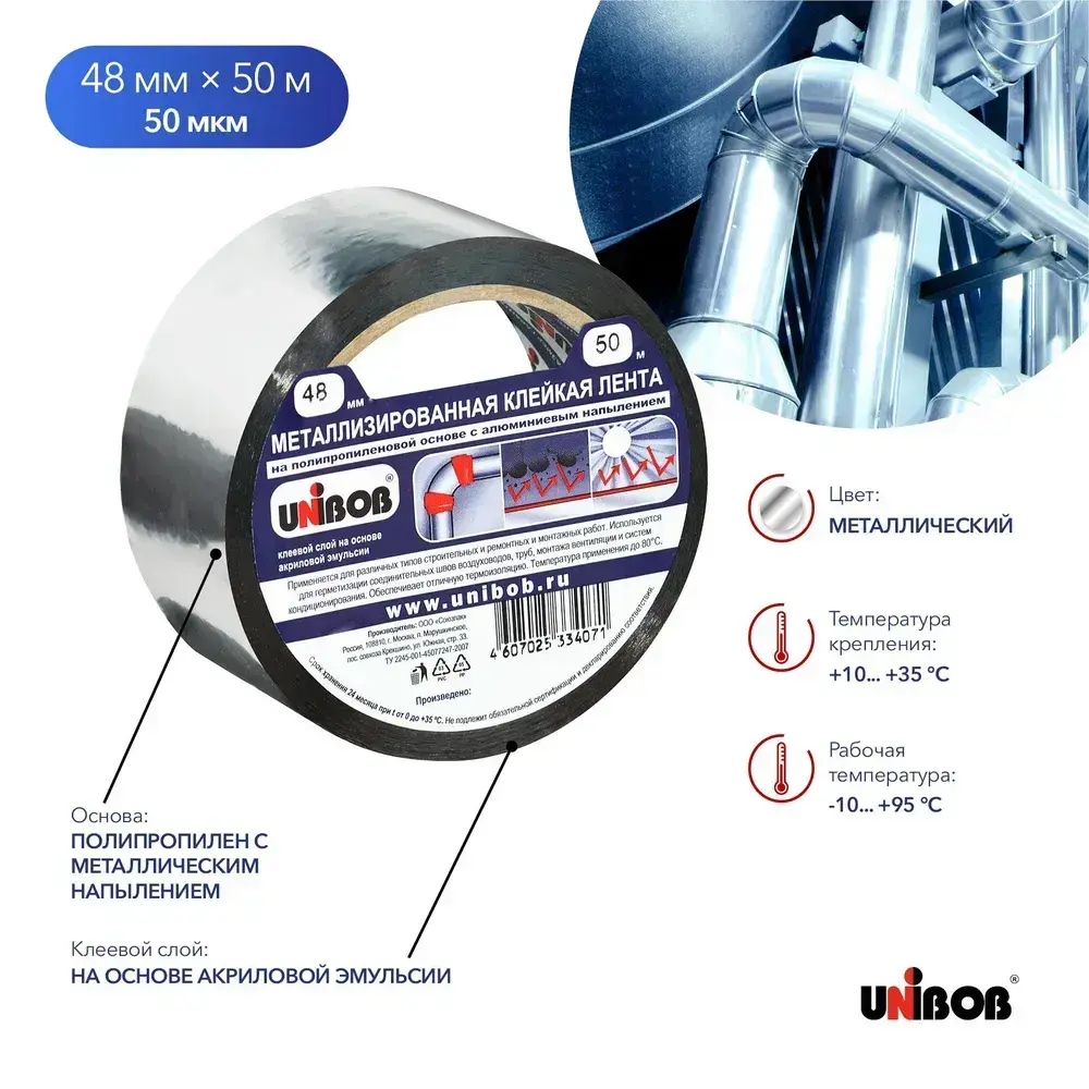 Клейкая лента металлизированная 48мм х 50м UNIBOB